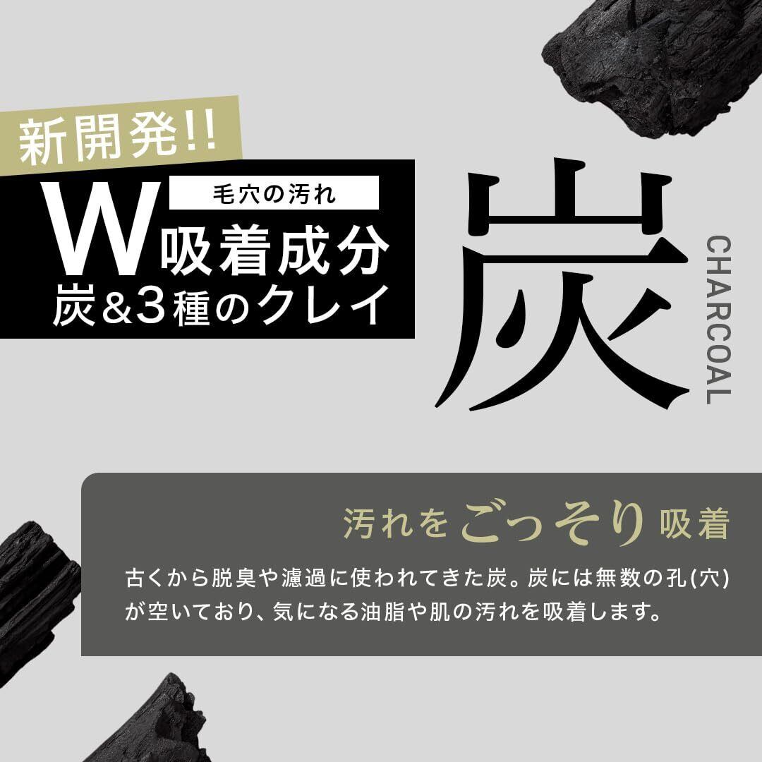吸着成分【炭+3種のクレイ】配合。肌に吸いつようねっとり高密度モチモチ泡で、しっとりと突っ張らずに肌を洗い上げます。