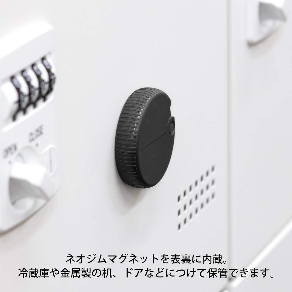 強力なネオジムマグネットが内蔵されており、冷蔵庫や金属製の机、ドアなど良く使う場所につけて保管することができます。