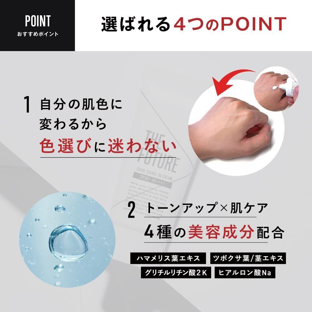 【公式】 THE FUTURE カラーチェンジBBクリーム 25g メンズBBクリーム SPF50+ PA++++ 日焼け止め 下地 cica コンシーラー ファンデーション コントロールカラー 青ひげ クマカバー ニキビ跡 モテ肌 自分の肌の色になじむ バレないナチュラルな仕上がり メンズメイク初心者におすすめ