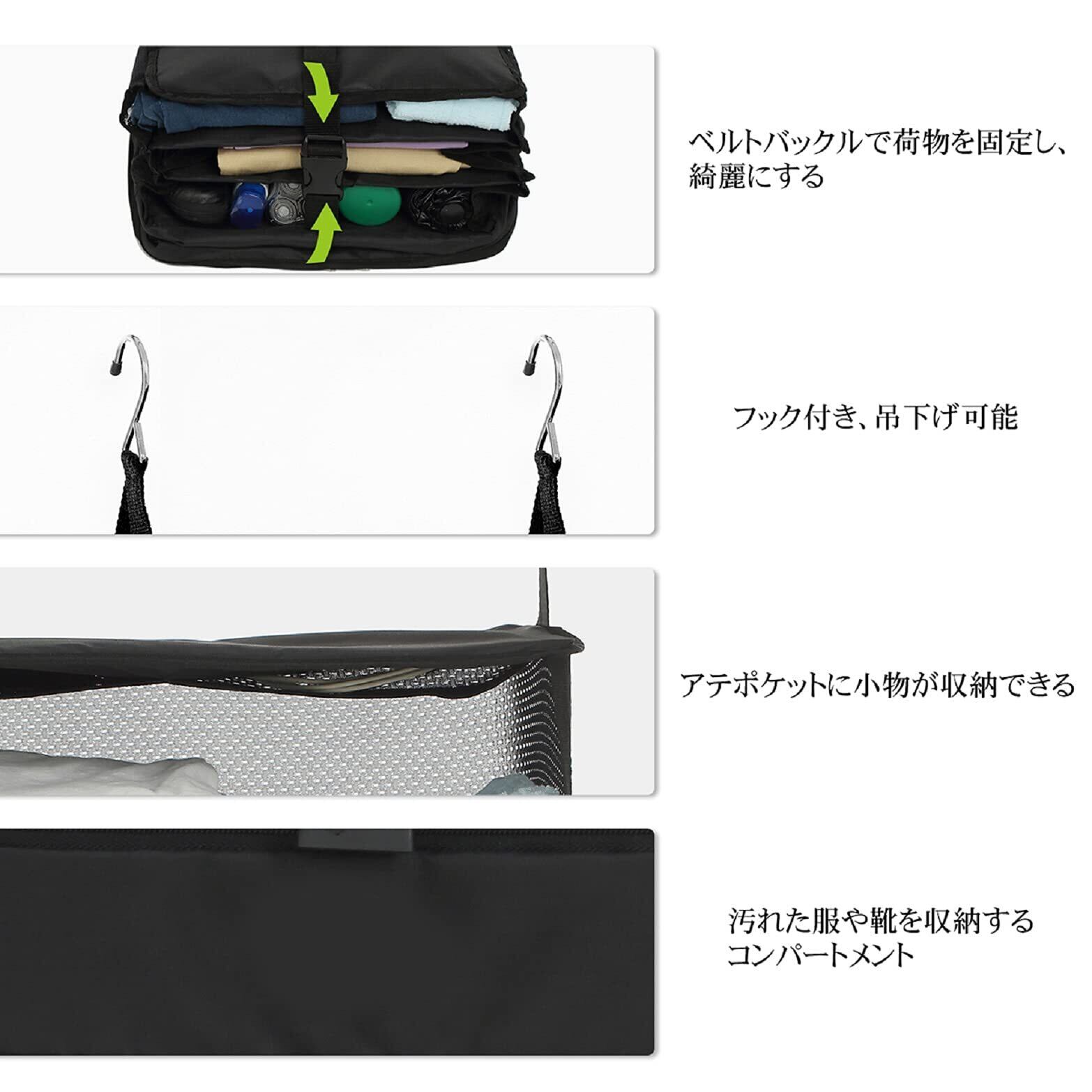 【素材】ポリエステル 【カラー】ブラック ブルー グレー ローズ カチオングレー 【吊り下げサイズ】Lサイズ:30*30*61CM XLサイズ:45*30*62CM 【荷物を入れた収納サイズ】Lサイズ:30*30*13CM XLサイズ:45*30*13CM 【不使用時の折畳みサイズ】Lサイズ:30*30*4CM XLサイズ:45*30*4CM