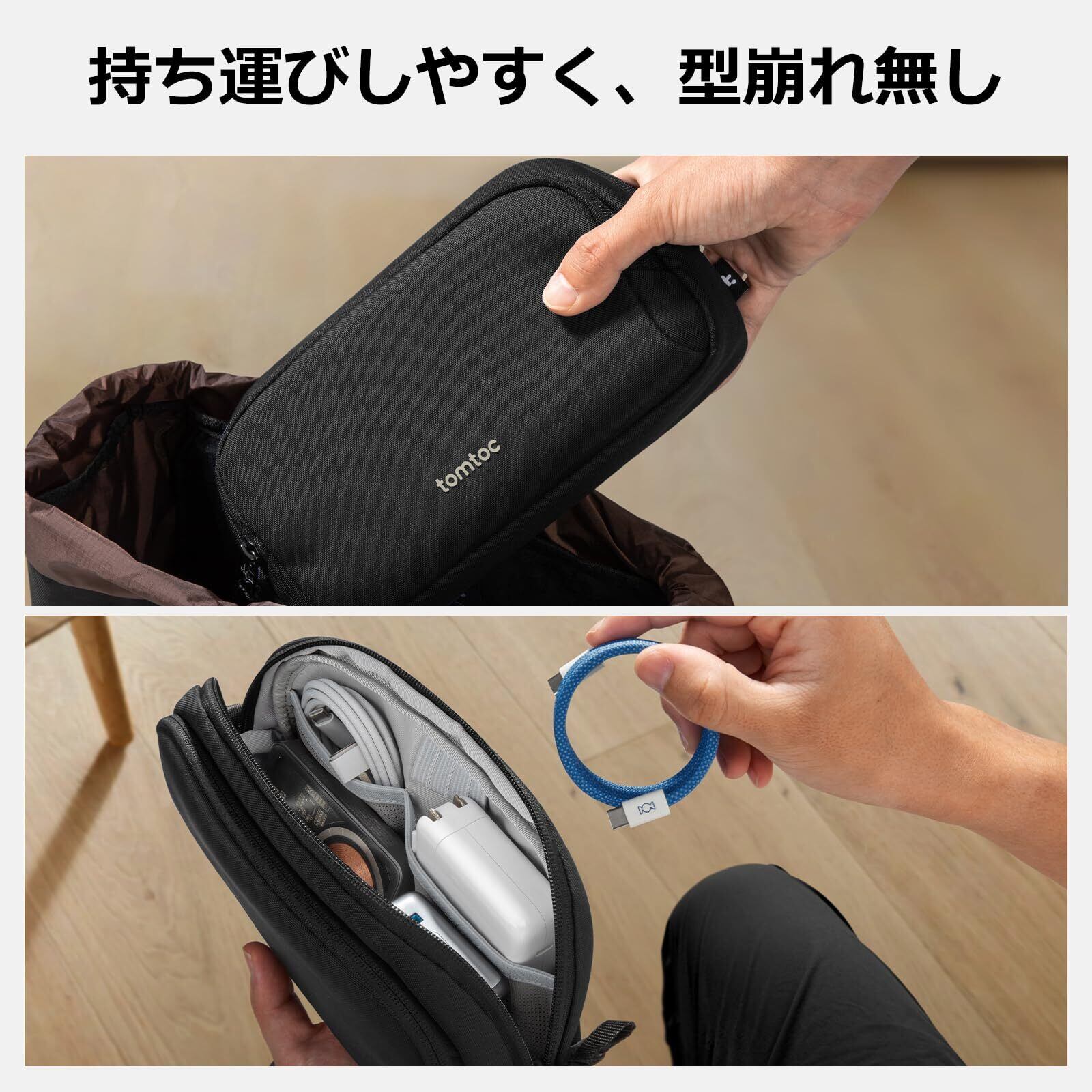 tomtoc ガジェットポーチ 大容量 トラベルポーチ PC周辺小物収納ポーチ 小物入れ バッグ ケース ケーブル アダプタ モバイルバッテリー マウス収納 出張 お出掛け オフィス 旅行 便利グッズ バックインバッグ 二層 自立 撥水 軽量 ブラック