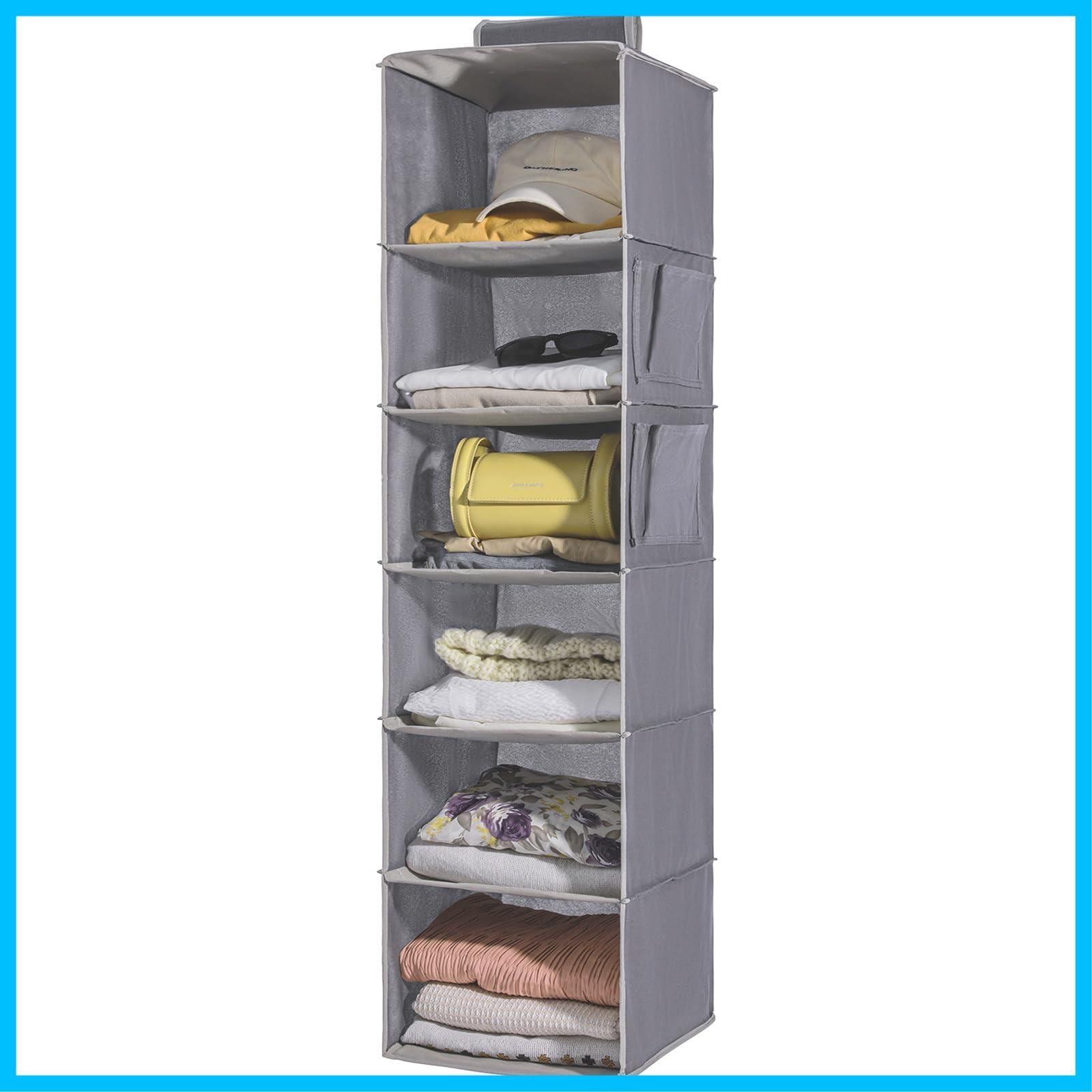 YRCBEHFU 吊り下げ収納 6段 衣類ラック 【最新竹製天然版】 クローゼット 収納吊り下げ 大容量 帽子/鞄 収納ラック 取付簡単 折り畳み式 旅行/出張 30x30x120cm(グレー、6段) | Lulu