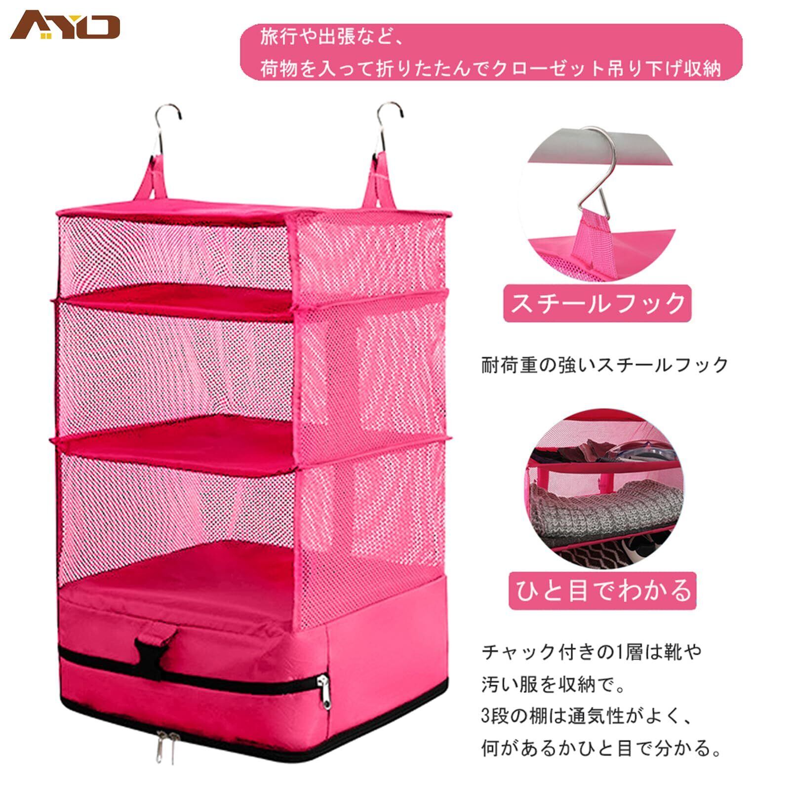AYO クローゼット 吊り下げ収納 収納ボックス 衣類ラック インナーバッグ 吊り下げラック クローゼット内収納 トラベルポーチ 折り畳み式 洋服収納 衣装ケース ハンガー収納 旅行ポーチ バッグ 省スペース 収納 旅行 出張 携帯用 取付簡単 大容量