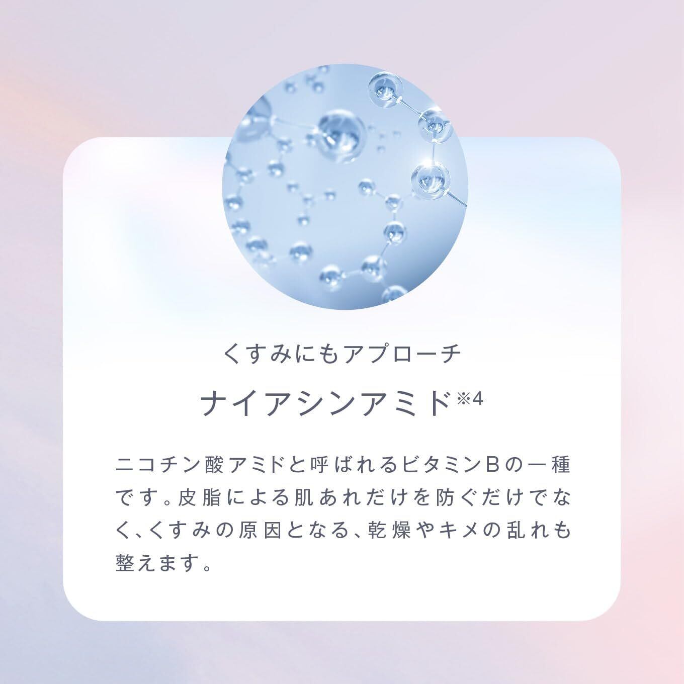高濃度※2アゼライン酸誘導体※1をはじめとする3つのひきしめ成分アゼライン酸誘導体※1、グリシルグリシン※3、ナイアシンアミド※4が肌の油分・水分のバランスを整えながら、肌をひきしめて、毛穴の目立ちにくいなめらかな肌へ整えます。