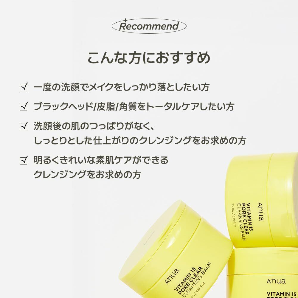 ANUA(アヌア)ビタミン15ポアクリアクレンジングバーム95ml メイク落とし W洗顔不要 毛穴 黒ずみ ブラックヘッド 皮脂ケア水分保湿 乾燥肌 混合肌 vitamin 15 pore clear cleansing balm スキンケア 韓国クレンジング 韓国コスメ【公式・正規品】 | Lulu