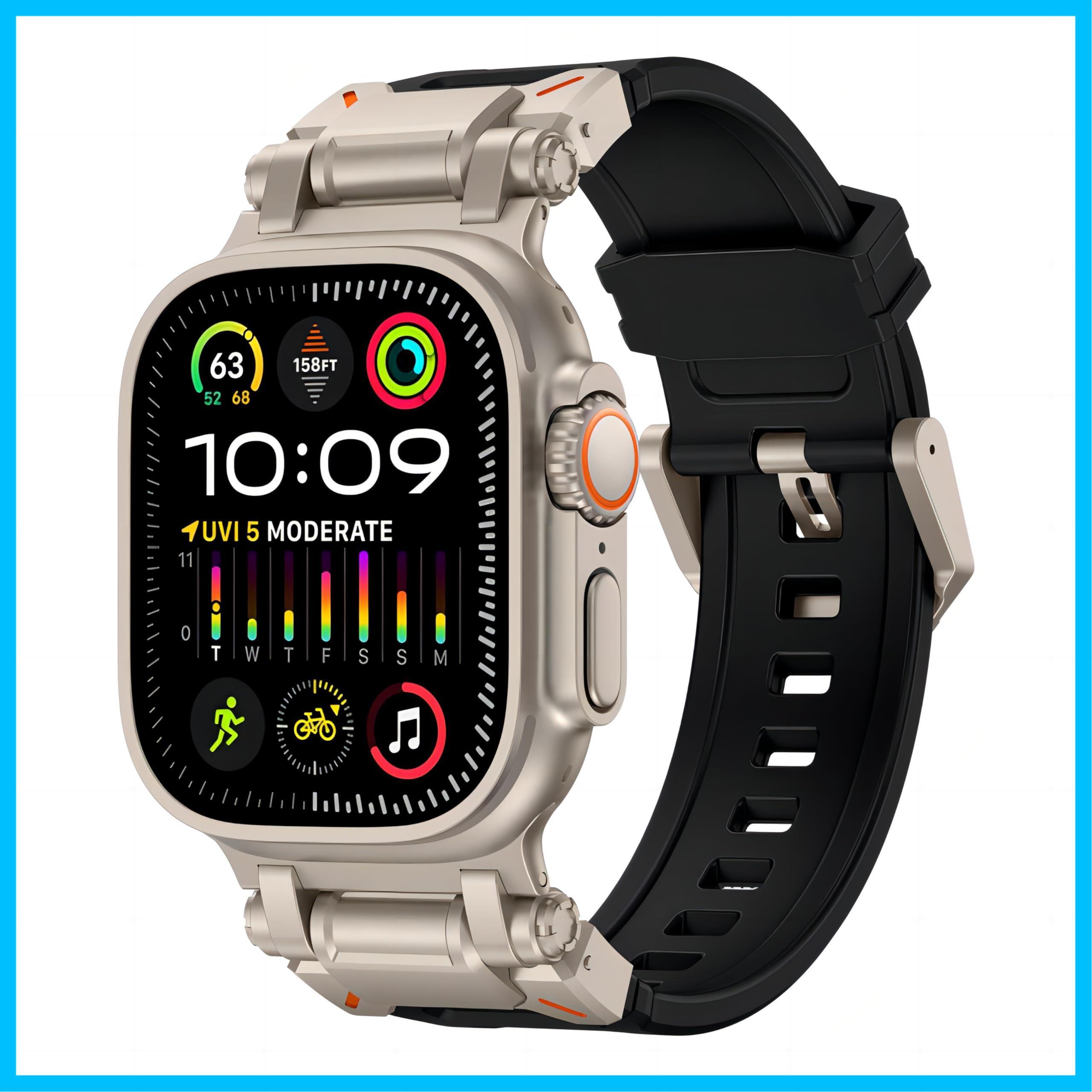 【革新的なデザイン】アップルウォッチ Ultraおよび大画面アップルウォッチ向けに設計されています。快適な防水設計で、スポーツ時の使用に適しています。他のバンドと比べて、接続部分はステンレス製で、より頑丈で壊れにくく、TPU素材のバンド本体と接続されており、スタイリッシュで大胆な接続デザインは、バンドのファッション性を高め、アップルウォッチとの相性を高めています。