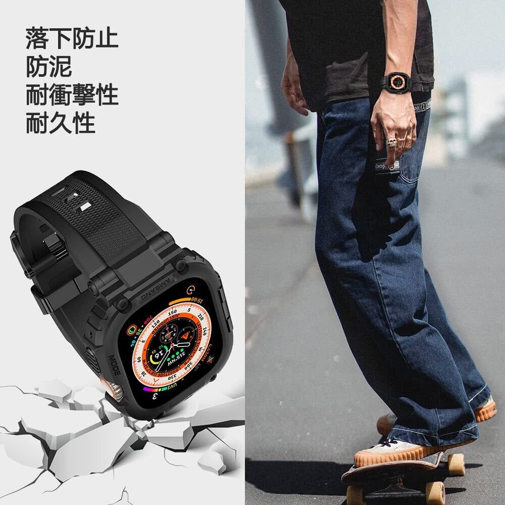 バンド ケース コンパチブル Apple Watch Ultra2/Ultra 49mm 強化ガラス フィルム付き バンパーカバー付き 頑丈なTPUベルド 一体型 M1 スポーツバンド アップルウォッチ ウルトラ 2 対応 49 mm メンズ 耐久性 耐衝撃 装着簡単 ブラック | Lulu