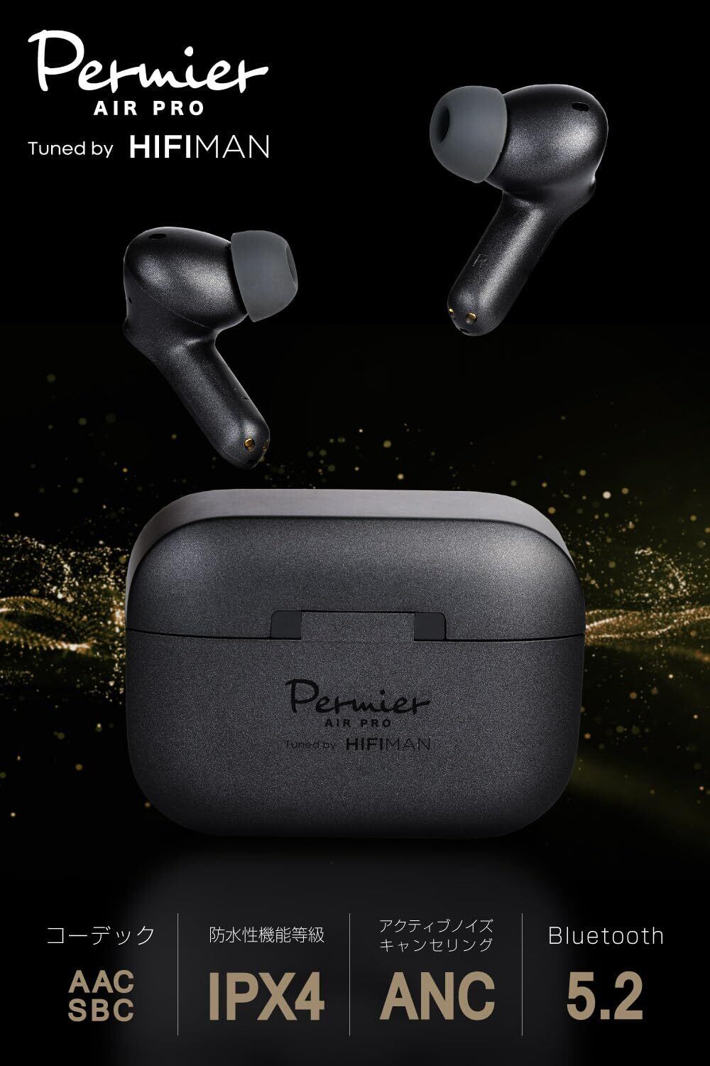 多摩電子工業 完全ワイヤレスイヤホン Permier AIR PRO PR-BS80K-AR Tuned by HIFIMAN アクティブノイズキャンセリング機能付き 防水性能等級 IPX4