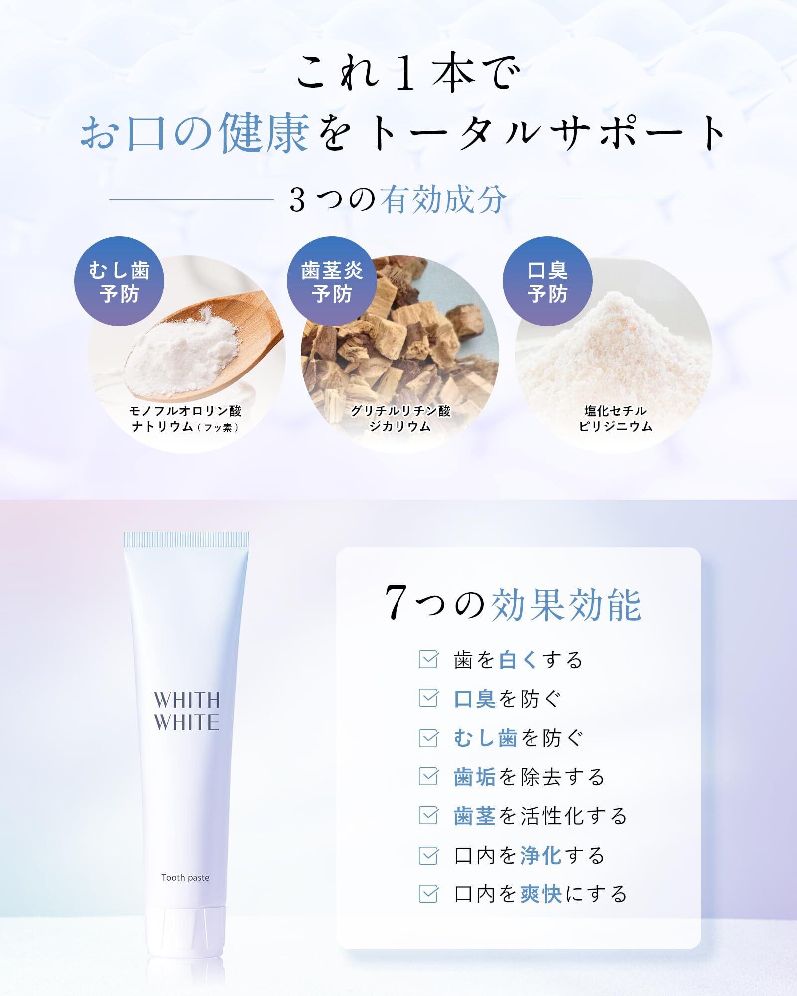 【お家でホワイトニング】歯の色はあなたの印象に大きく影響します。WHITH WHITEの薬用ホワイトニング歯磨き粉でケアして、歯本来の白さを取り戻し、明るく清潔な印象にしませんか?