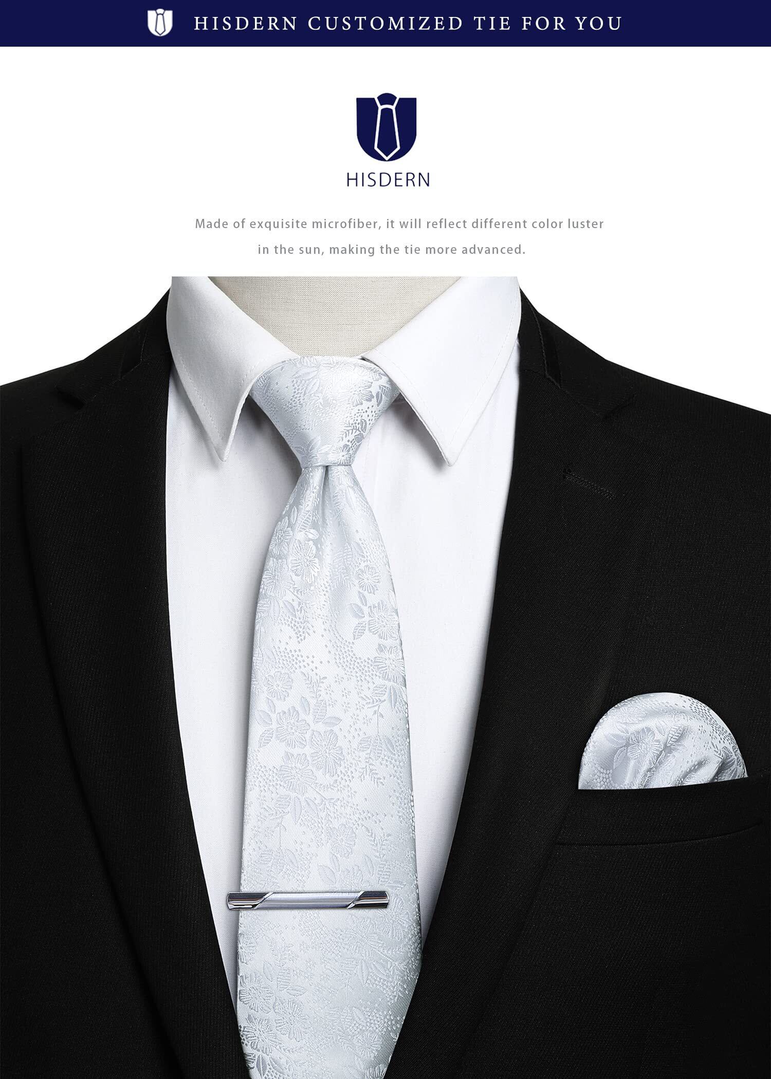 [HISDERN] ヒスデン 結婚式 ネクタイ シルバー メンズ ネクタイチーフ セット ビジネス 3点セット タイクリップ 高級 ギフトボックス付き 紳士用 礼服用 入学式 卒業式 TA-004S | Lulu