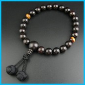 葬儀、お通夜、法事、お墓参りにて、すべての宗派のお客様にお使いいただける男性用の「略式数珠」でございます。素材は、人気な黒檀でございます。アクセントには、虎目石を使用させて頂きました。房は、丈夫で扱い易く、型崩れを起こさない小田巻梵天房仕上がっております。
