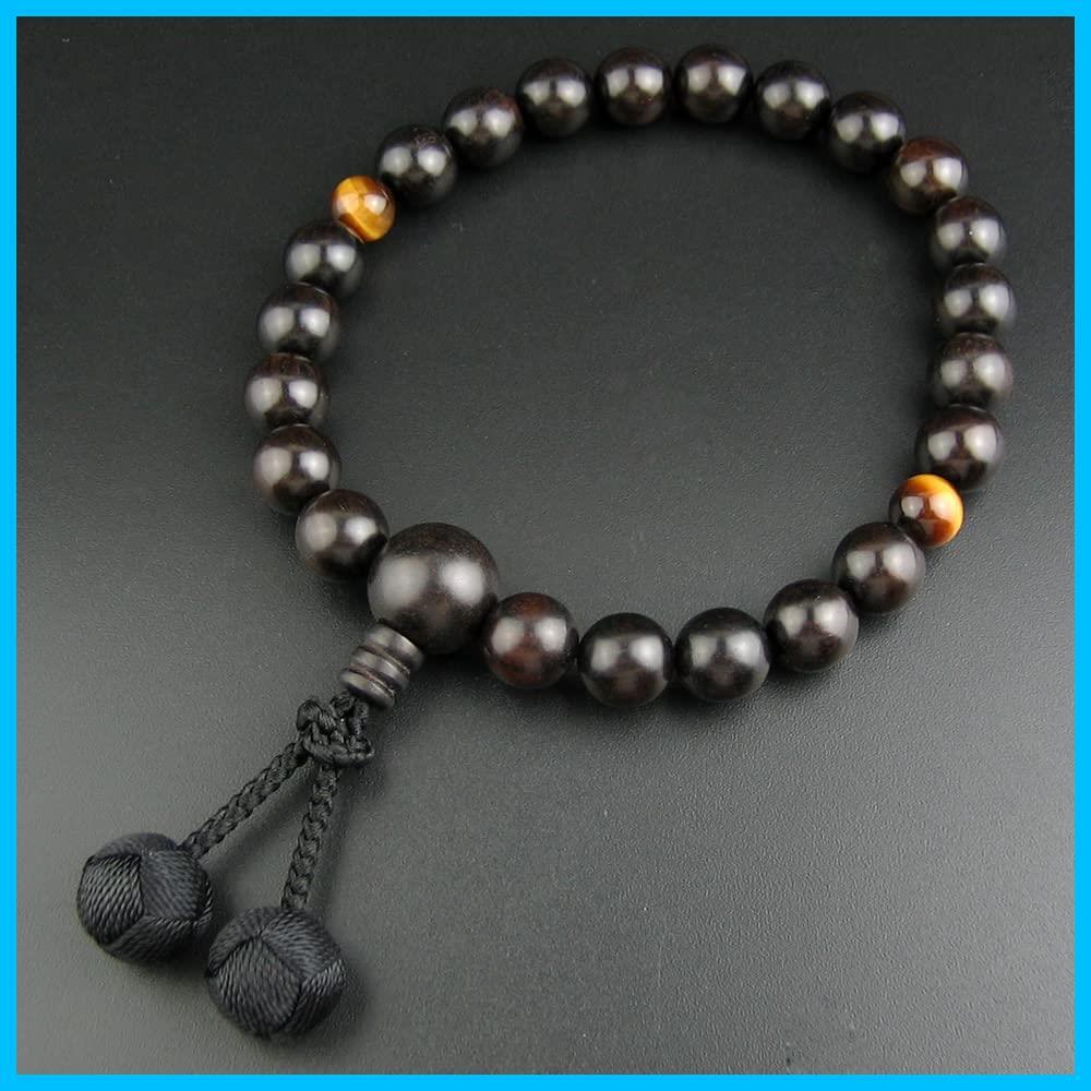 素材 黒檀+虎目石 主玉:黒檀13ミリ(22玉) 天玉:虎目石10ミリ 親玉:黒檀18ミリ 房:黑色小田巻房