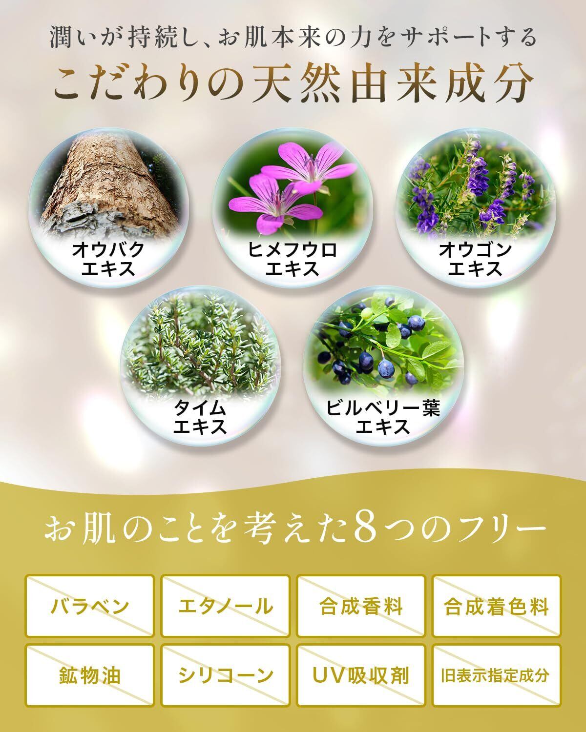 ✨【8つの無添加】敏感な肌のために、パラベン、エタノール、合成香料、合成着色料、鉱物油、シリコーン、UV吸収剤、旧表示指定成分は不使用