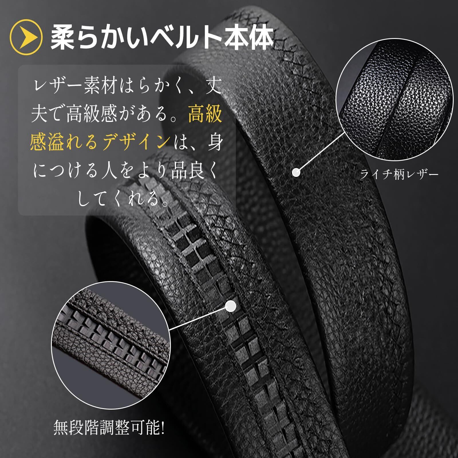 [WISSUA] ベルト スーツベルト メンズ オートロック式ベルト 穴なし サイズ調整可能 ビジネス カジュアル 紳士ベルト ギフトボックス付き