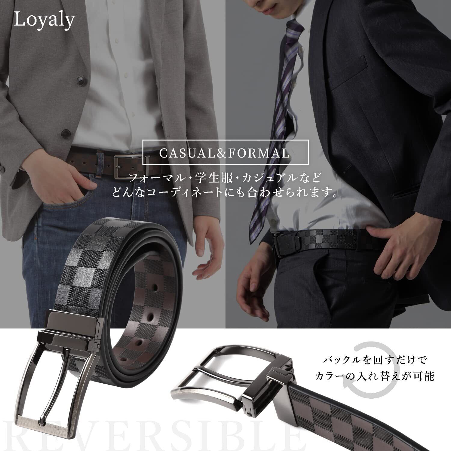 [Loyaly] ベルト メンズ リバーシブル ビジネス 本革 革 ブラック 紳士 おしゃれ カジュアル おおきいサイズ 回転式ベルト 長さ調整可能 ギフトBOX付