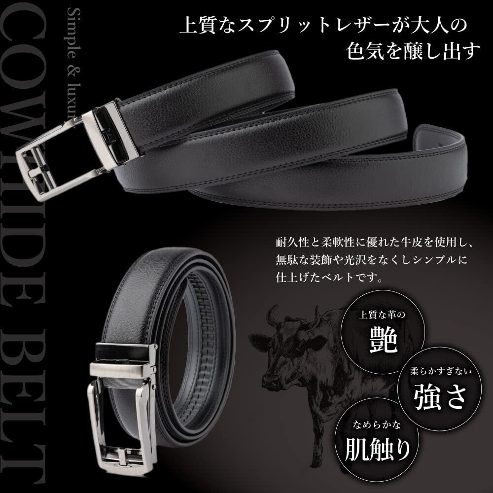 【 100本のベルトから選んだ本物のベルト 】約100本のメンズベルトから品質と費用が最も良いメンズベルトを選び自社生産しております。弊社のオートロックメンズベルトのポイントは3点御座います。1、『ベルトの生地は上質な牛皮(本革)』革の質、におい共に上質な牛皮(本革)を使用しております。2、『簡単ベルト調整』ワンタッチでバックルの取り外しが出来る為、誰でも簡単にベルトの長さ調整が可能です。3、『どんなシチュエーションでも使用可能』仕事や就活のほかにも、結婚式や成人式などのフォーマルなシーンにも最適なメンズベルトです。誕生日やバレンタイン、父の日のプレゼントにも喜ばれています。お好みのスタイルに合わせてご活用下さい。