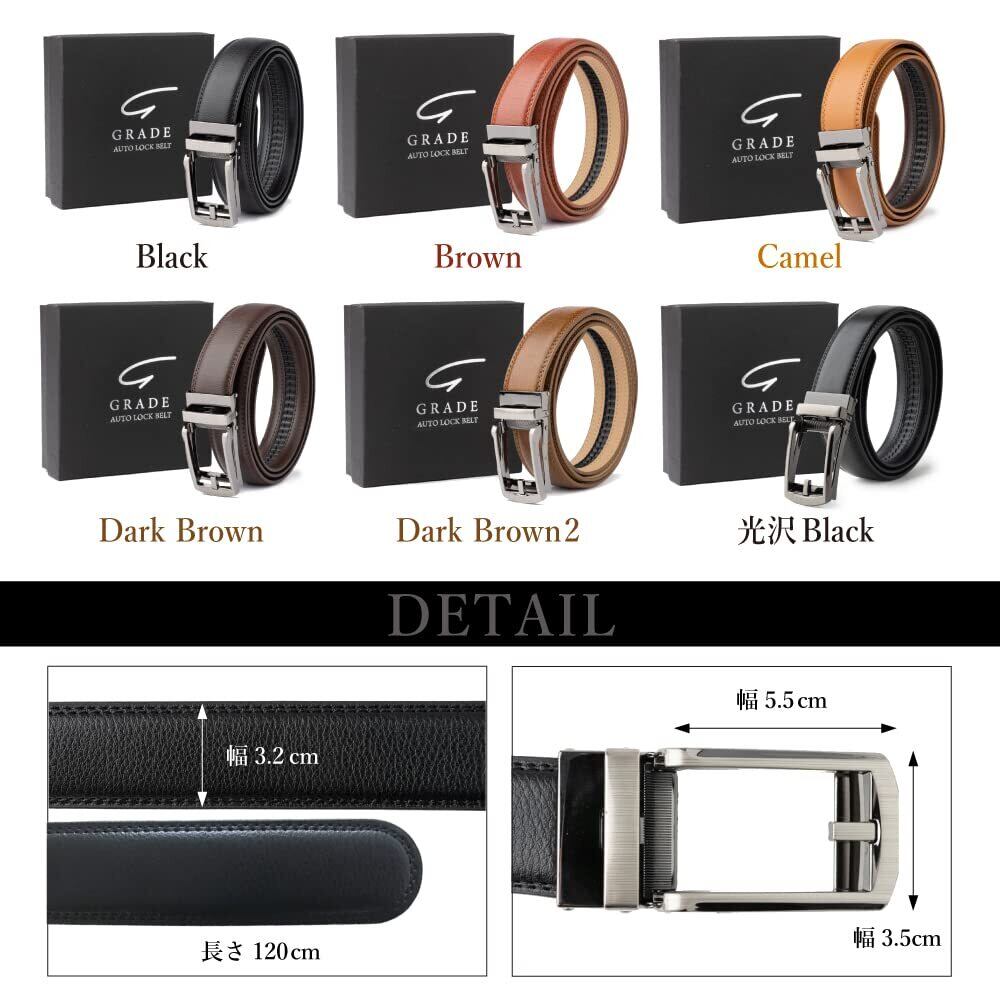 [GRADE] ベルト メンズ 本革 オートロック式 『本革で作られた本物の1本』 ビジネス カジュアル バックル取替可能 ベルト長さ調整可能