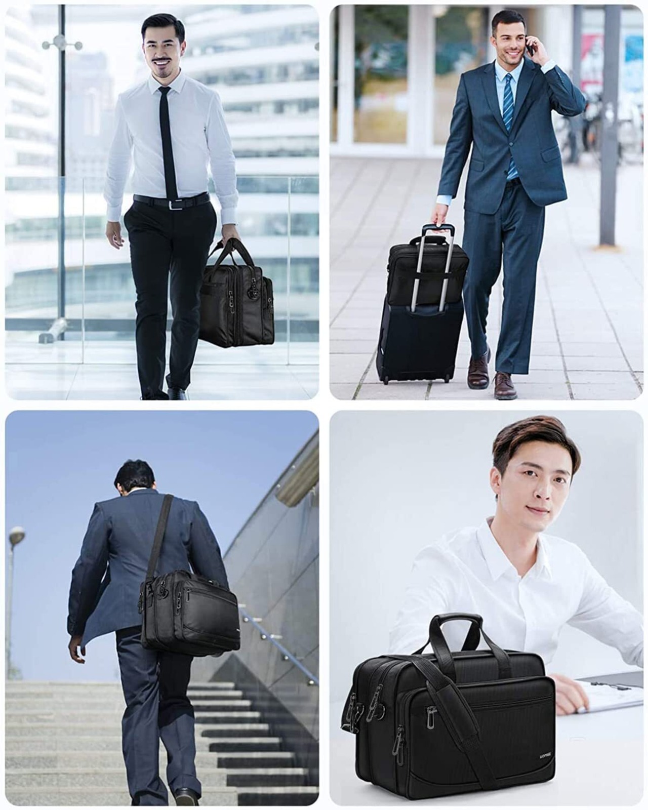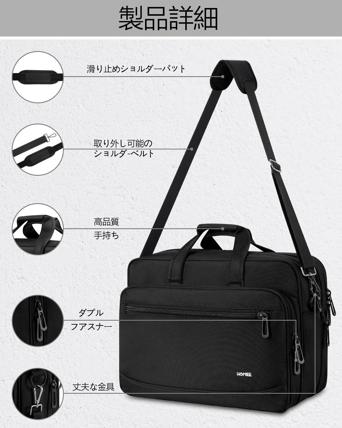 [HOMIEE] ビジネスバッグ メンズ [新しい ダブルファスナー 17.3インチ 大容量 ] 拡張可能 pcバッグ ノートパソコンバッグ 出張 ブリーフケース 2way ショルダーバッグ A4対応 自立 軽量 通勤 ブラック 父の日 | Lulu