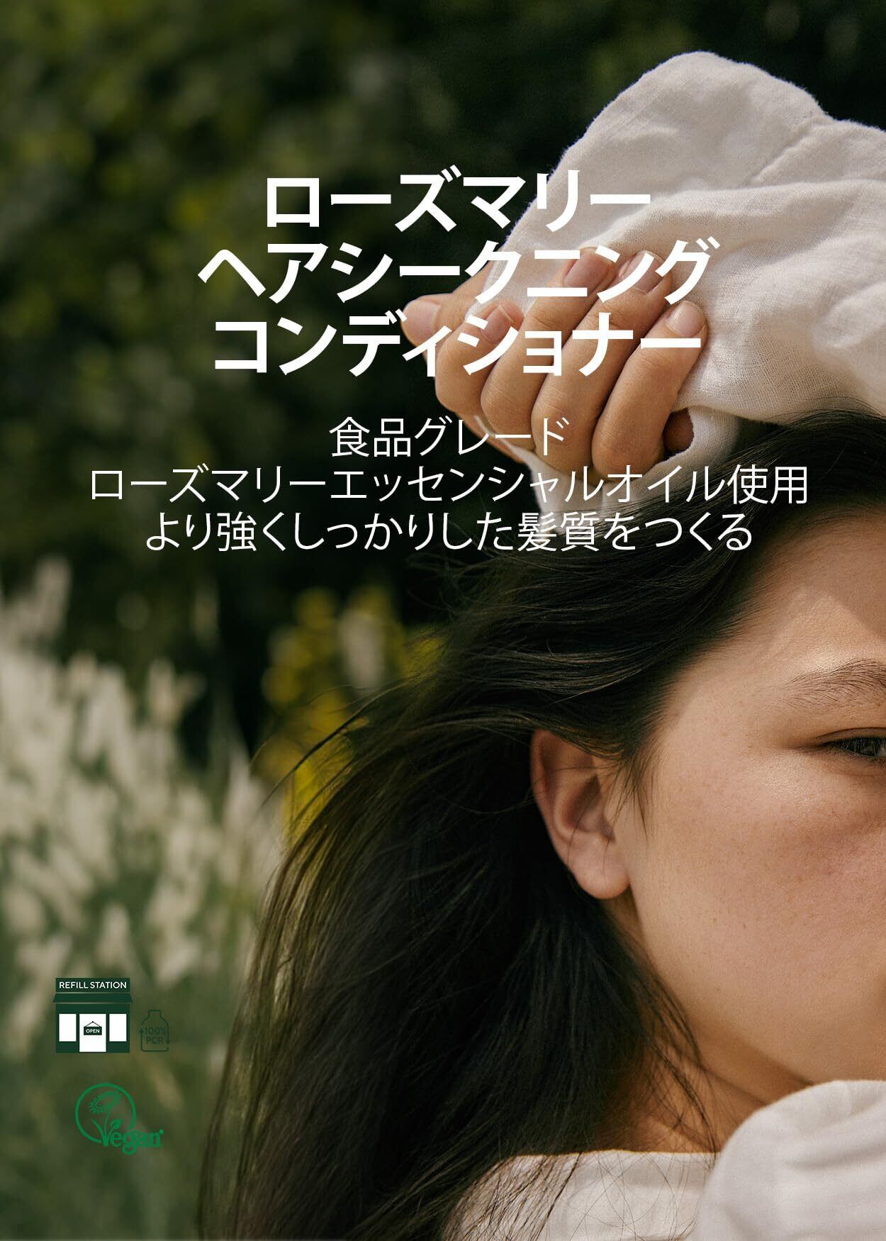 ローズマリーオイル配合のノンシリコンコンディショナー、頭皮の循環を活発にし、栄養を与えてしっかりした髪質に仕上げます。