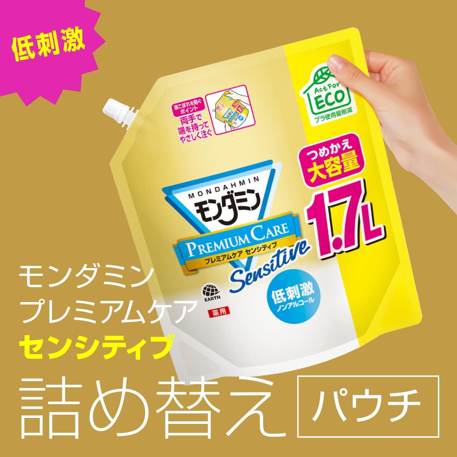 ●「モンダミン プレミアムケア センシティブ」のたっぷり使えるつめかえ大容量1.7L。