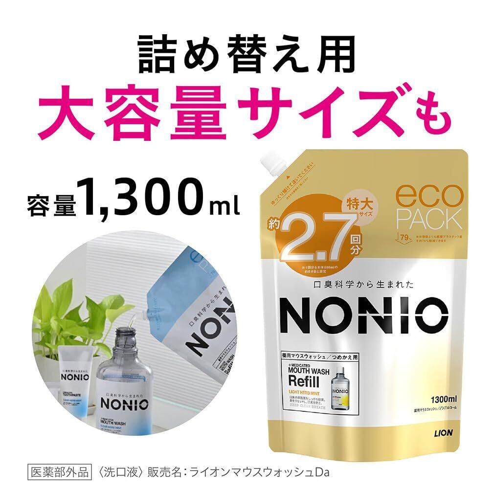【限定】 NONIO(ノニオ) [医薬部外品] マウスウォッシュ ライトハーブミント(ノンアルコールタイプ) 洗口液 口臭原因菌を殺菌 600ml +ミニリンス80ml