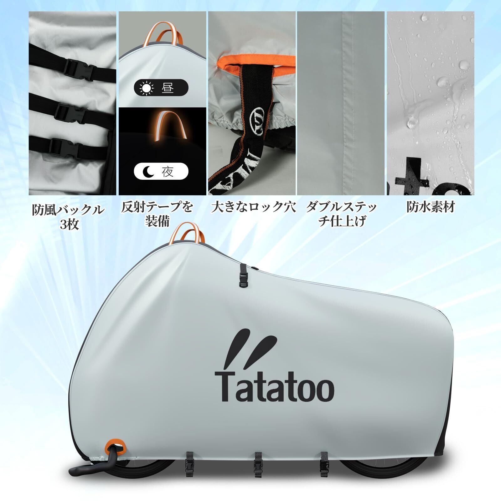 【紫外線対策】 Tatatoo 自転車カバーは、紫外線から自転車を守るために特別に設計されています。高品質のアップグレード版210D防水素材は、太陽の有害な紫外線から自転車のボディや塗装を効果的に防ぎます。紫外線による色あせや劣化を防止し、自転車の美しさと耐久性を保つことができます。