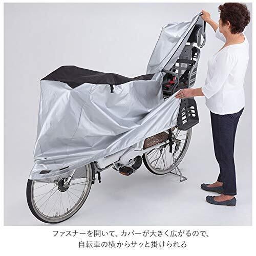 ・ヘッドレスト付き後ろ子ども乗せシートもすっぽり収まる!はっ水加工生地で大切な自転車を雨や汚れからしっかり守るファスナー付きサイクルカバー・電動アシスト車3人乗り対応!