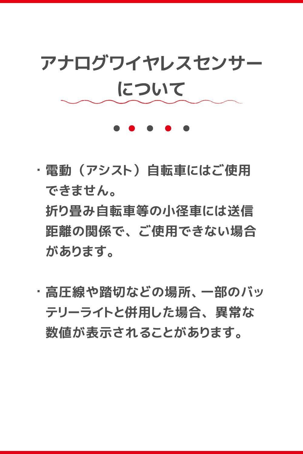 使用電池/電池寿命:コンピュータ リチウム電池(CR2032)×1/約1年(1日1時間使用時、使用環境により異なる) スピードセンサー リチウム電池(CR2032)×1 積算距離で約10000km ※気温20℃でセンサー・コンピュータ間65cmに取付けた時の平均値。※あらかじめ装着されている電池の寿命は、上記より短い場合があります。