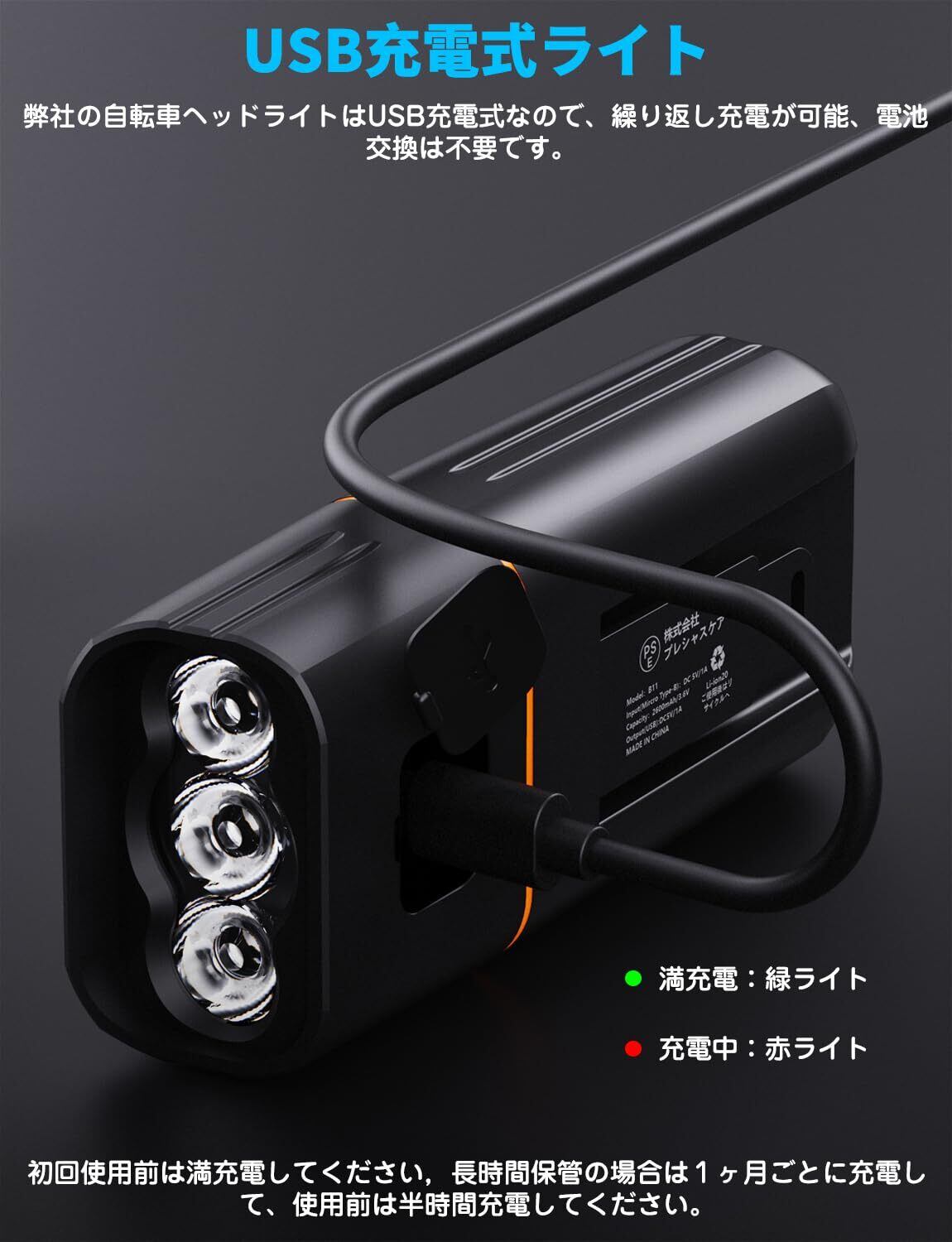 【USB充電式&モバイルバッテリー機能】スピードな充電が行えるUSB充電を採用し、モバイルバッテリーやUSB充電器に繋ぐと繰り返し充電可能、電池は不要。PSE認証済、本体に出力ポートが追加しており、緊急予備電源として、移動中や旅先でのスマホの電池切れの不安を解消してくれる自転車 ライト です。