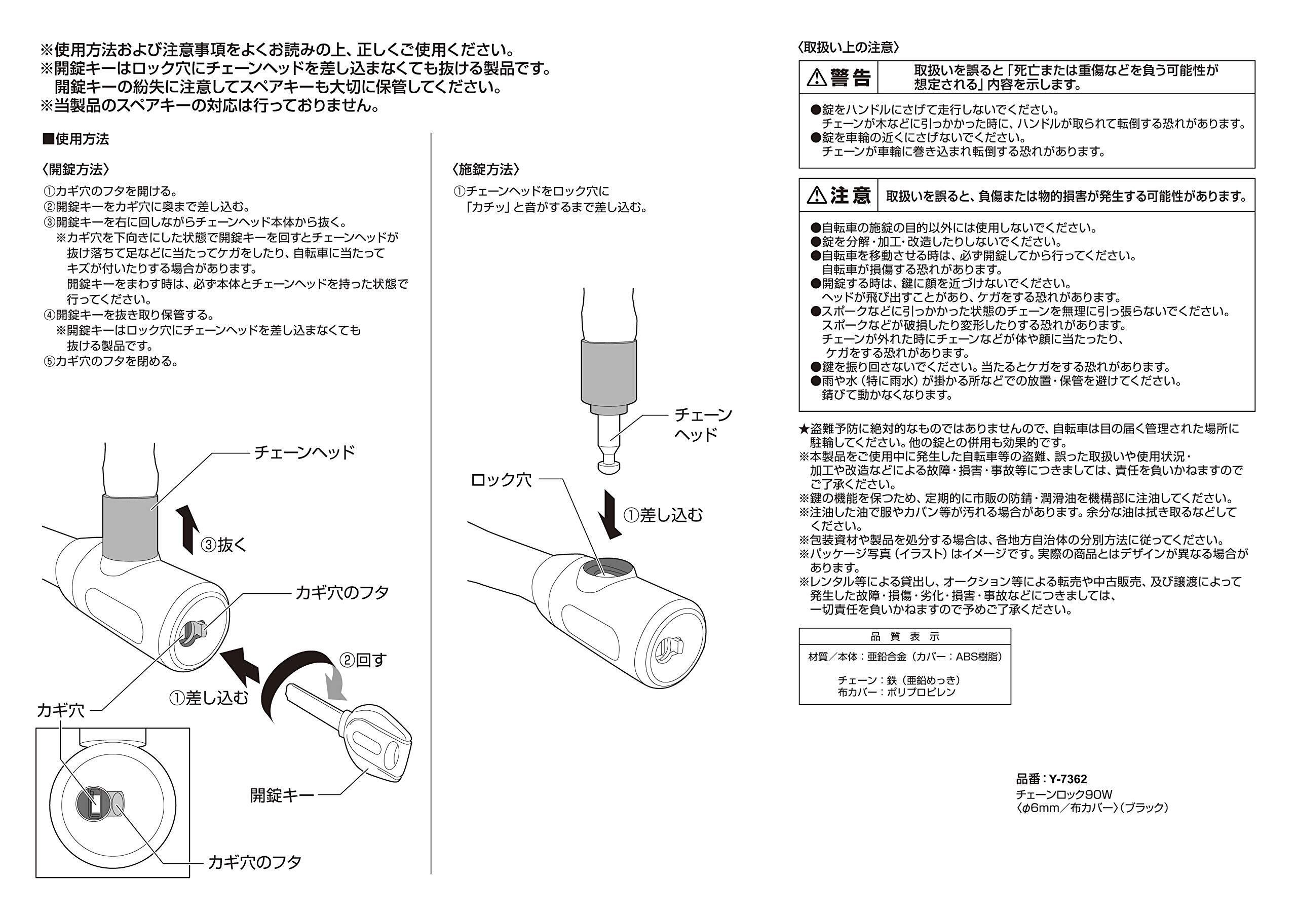 材質:本体/亜鉛合金(カバー=abs樹脂)、チェーン/鉄(亜鉛めっき)、布カバー/ポリプロピレン