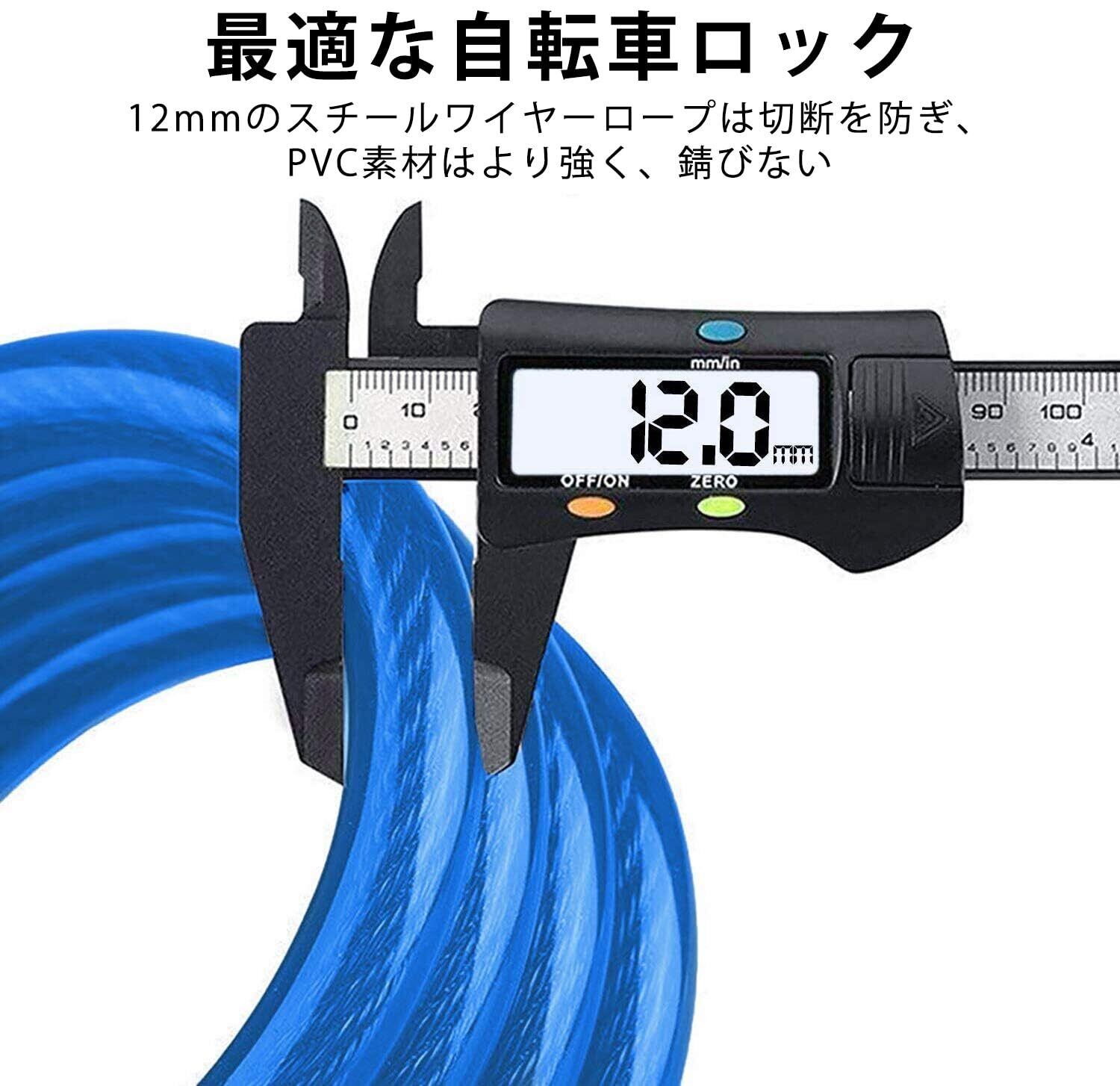 [12mmワイヤーロープ 防護アップグレード]自転車鍵ワイヤーロープは先進的な技術で作られ、12mmの太いワイヤーロープを採用し、強度は伝統的な合金の3倍。自転車ワイヤーロック外身は多層PVC材質で包まれ、頑丈で厚い。製品は高低温と極端な雨雪条件のテストを経て、耐摩耗性と耐錆性が優れており、あなたの私有財産により良い安全保障を提供します。