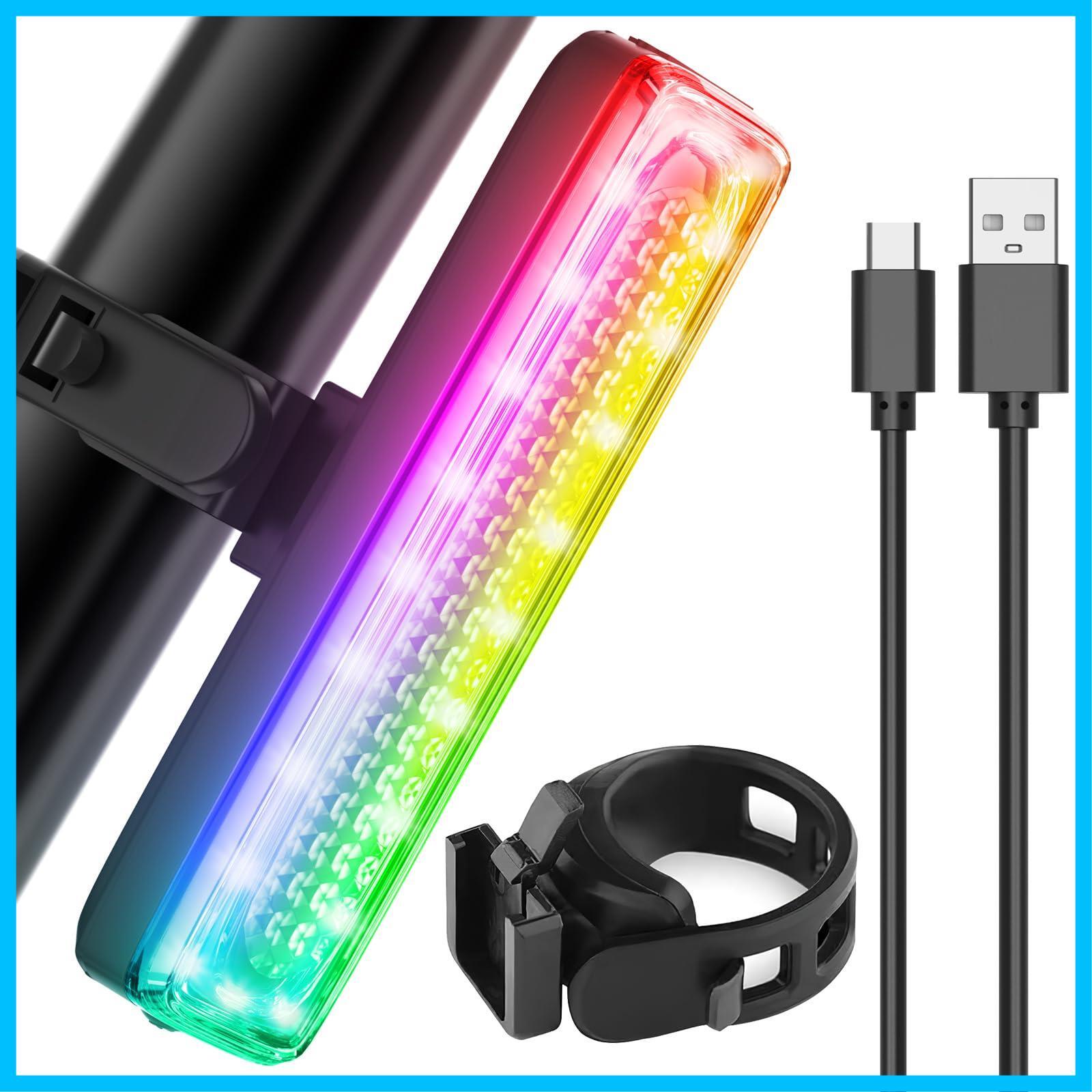 REYUNGGO 自転車テールライト LED自転車リアライト、USB-C充電式バイクライト、 IPX6防水性、7色14モード-赤+虹色+カラフル(虹+白+など)自転車ライト ロードバイクやマウンテンバイク、ヘルメート,スクーターなど対応 | Lulu