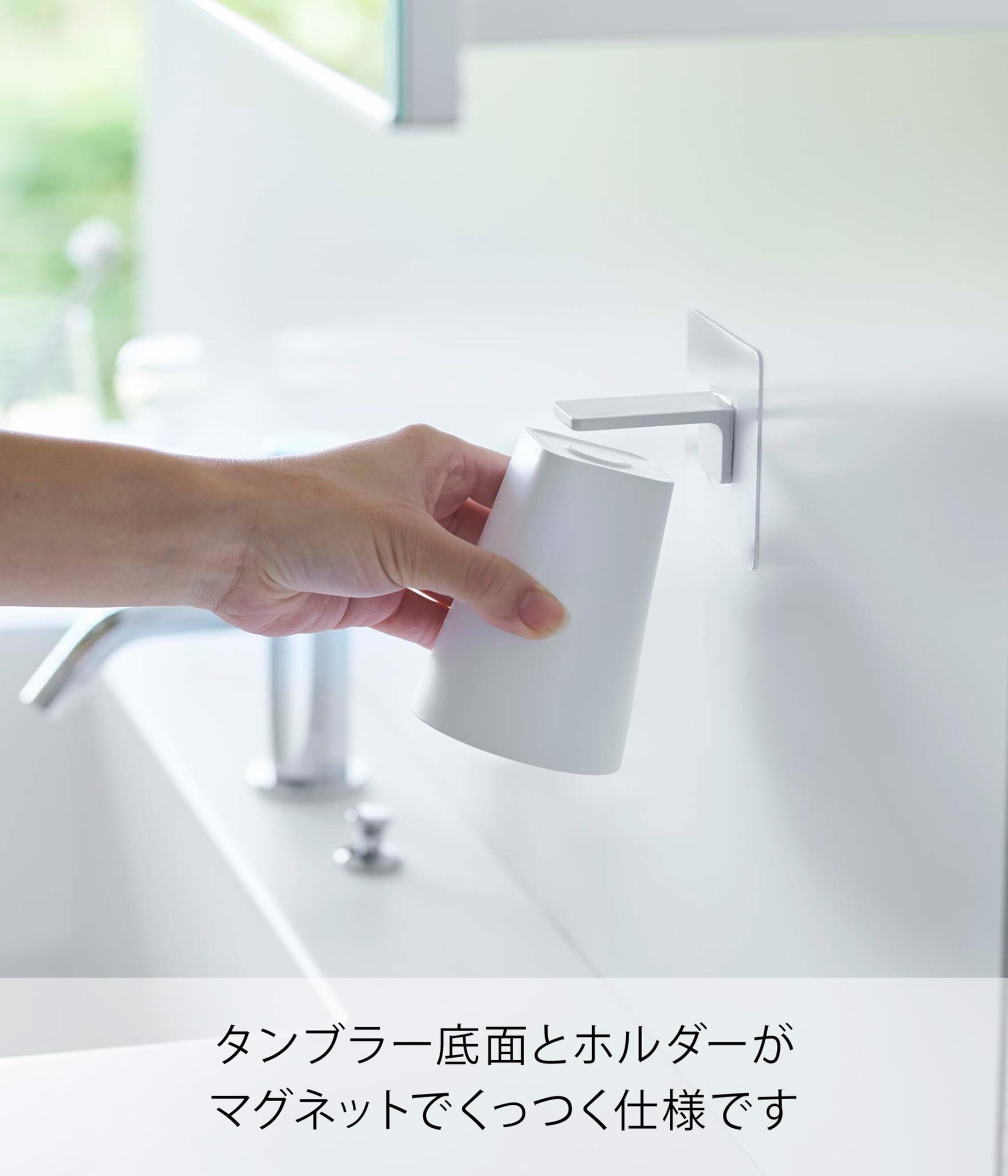 山崎実業(Yamazaki) フィルムフック マグネット タンブラー ホワイト 約W7×D7×H9.5cm(タンブラー) 約W7×D7.5×H12.5cm(収納時全体) タワー tower 浮かせて収納 簡単取付 5487