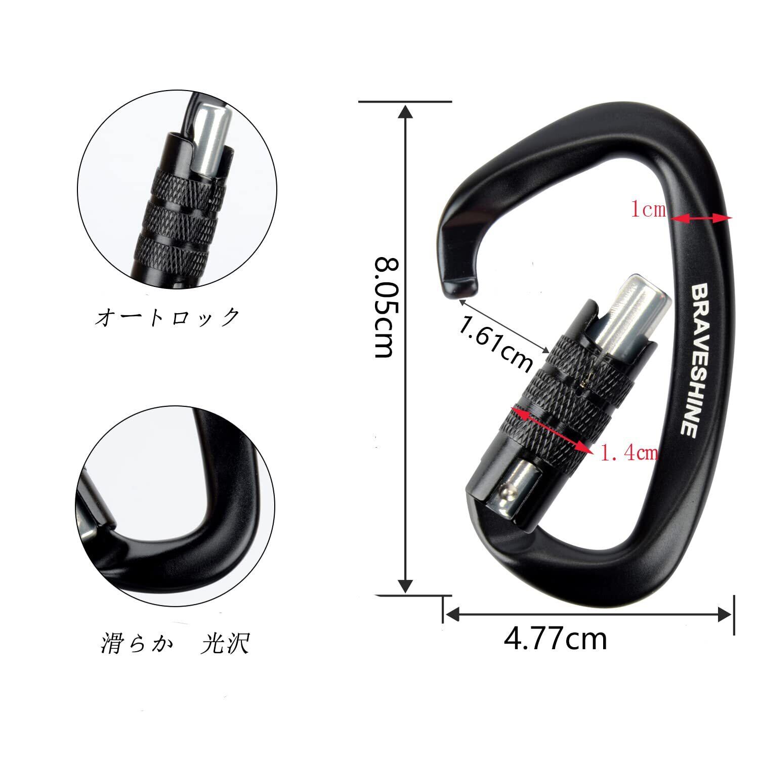 カラビナ 12KN オートロック式 BRAVESHINE 耐荷重1200kg ロックカラビナ Dリング 軽量 ハンモック タープ キャンプ用 荷物のフック 犬のリード用 多機能 2個セット