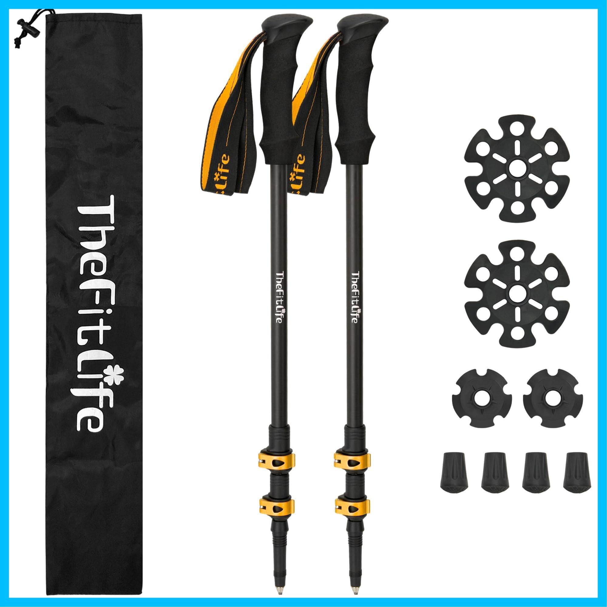 TheFitLife トレッキングポール カーボン 登山 ストック 軽量 57-120cm伸縮 ウォーキングポール ウォーキングステッキ 2本セット 登山杖 登山ポール 山登り ステッキ ハイキングポール 男性 女性 高齢者