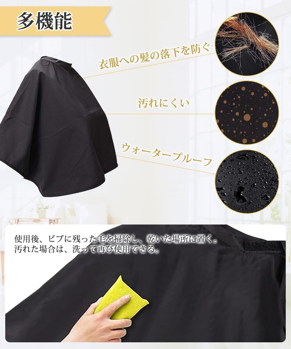【首周り調整】首周りは小さな子供や大人の首に合わせてマジックテープで調整できます、折り畳んで持ち運びに便利です。髪のくずを首から服に落とす心配がありません。