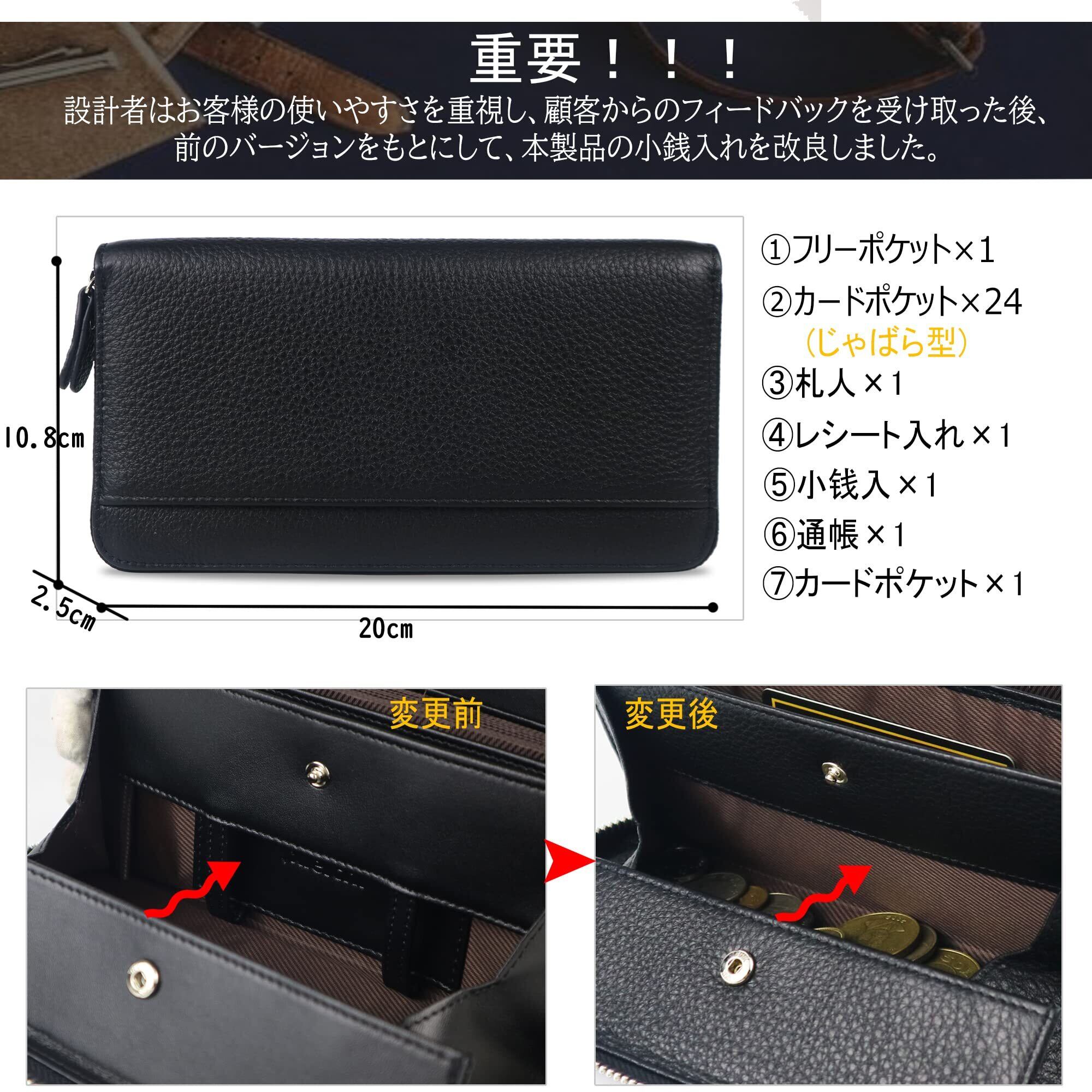[jxleichi] 財布 メンズ 長財布 さいふ 牛革 大容量 25枚カード収納可能 ラウンドファスナー カードケース 本革 スキミング防止 磁気防止 お札入れ 小銭入れ 多機能軽量 防水 男女兼用一流の財布職人が作る 財布20*10.8*2.5cm ブラック | Lulu