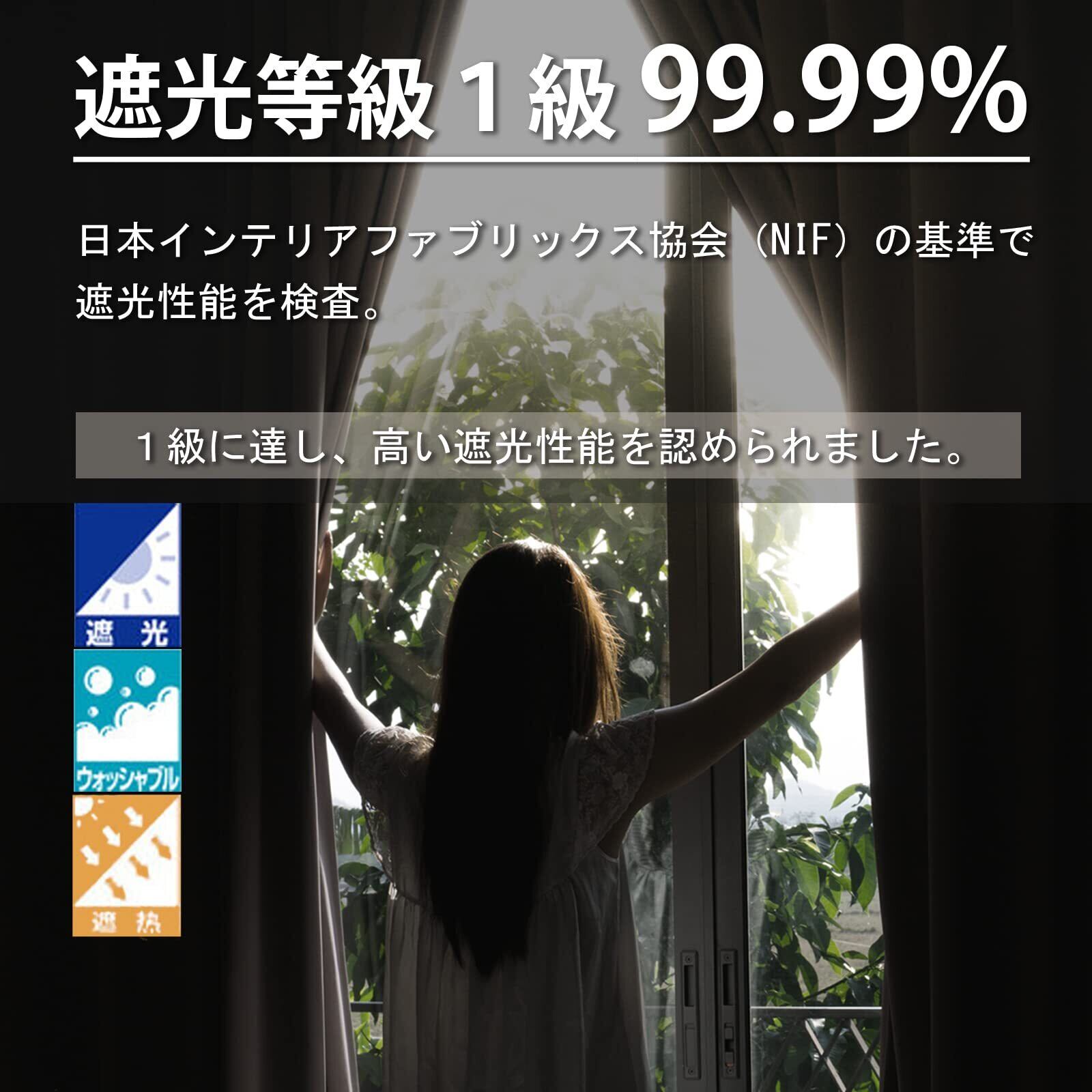 1級遮光:250gsmポリエステル生地(三層構造)で仕上げた一級遮光カーテン、遮光率は99.99%以上、外からの光をほとんど通さなく、昼間でもぐっすり眠れます。ホームシアターを楽しんでいただき、室内の光が外に漏れることを防止し、外から部屋中の様子が見えなく、プライバシーをしっかりと守ります。一人暮らしの女性により安心感を与えます。(カーテンの遮光効果は色により若干差があるのでご理解の上、ご了承お願い致します。よりいい遮光効果を追求する方は、濃い色のカーテンをお勧め致します。)