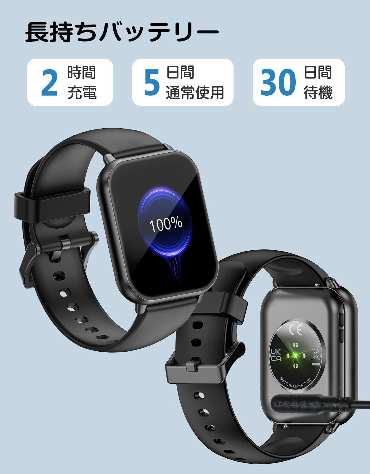 RUIMEN スマートウォッチ iPhone アンドロイド対応 通話機能付き Smart Watch 歩数計 腕時計 着信&メッセージ通知 懐中電灯 天気予報 音楽制御 100+種類運動モード 文字盤 IP68防水 長持ちバッテリー ストップウォッチ 目覚まし時計 長座注意 スマホ探す 日本語説明書 バンド付属