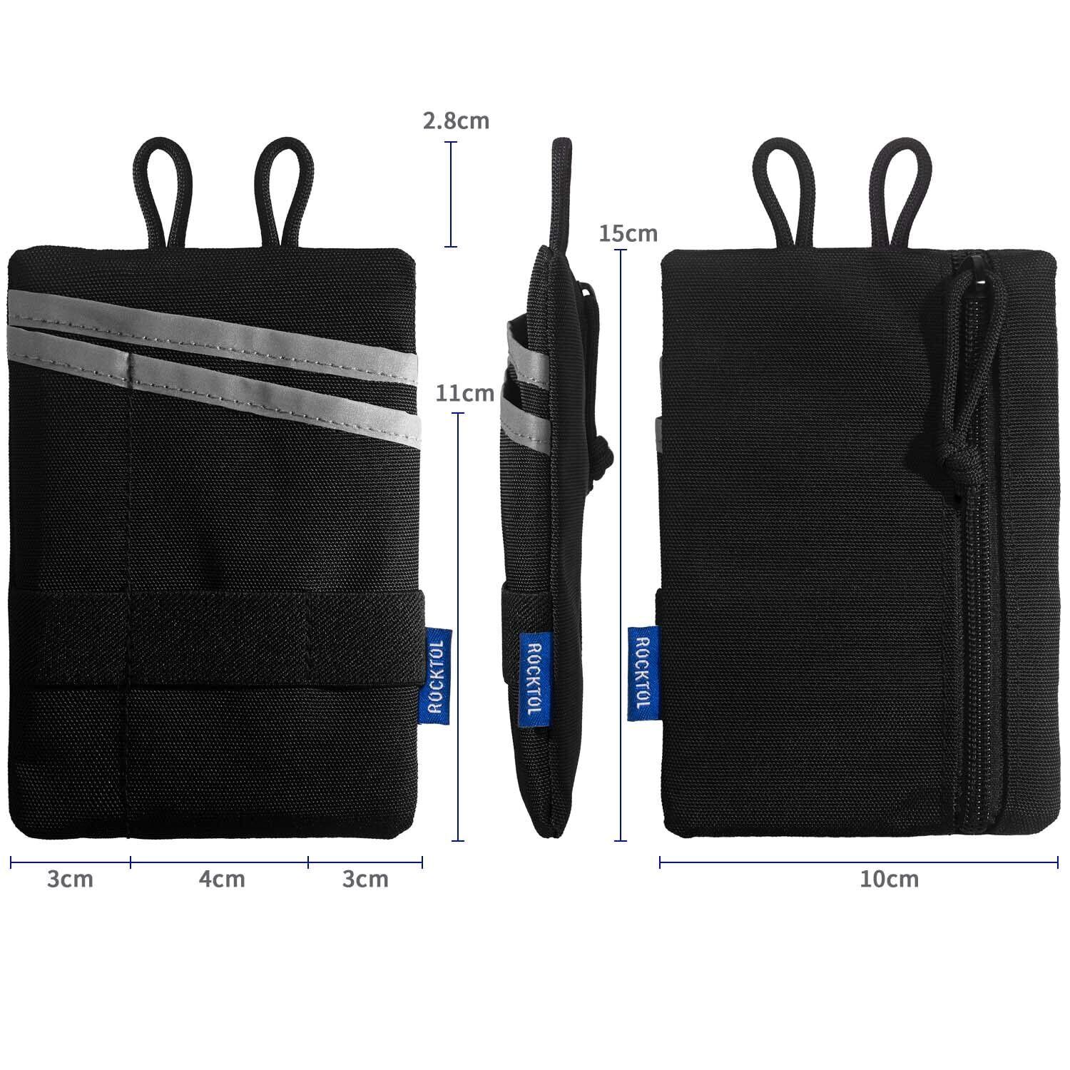 [反射バインディング付きポケット ガジェット ポーチ] Rocktol メンズ ポーチは丈夫な 900D ナイロンで作られており、耐久性と耐摩耗性に優れています。フロントポケットの 2 つの反射グレーバインディングは、光を反射することで耐用年数を延ばし、暗闇の中でもツールポーチを見つけやすくします。 ポーチのサイズは10.2 cm(W) x 15 cm(L)で、日常使用、アウトドア活動、旅行などのポケットやバックパックにぴったり収まります。