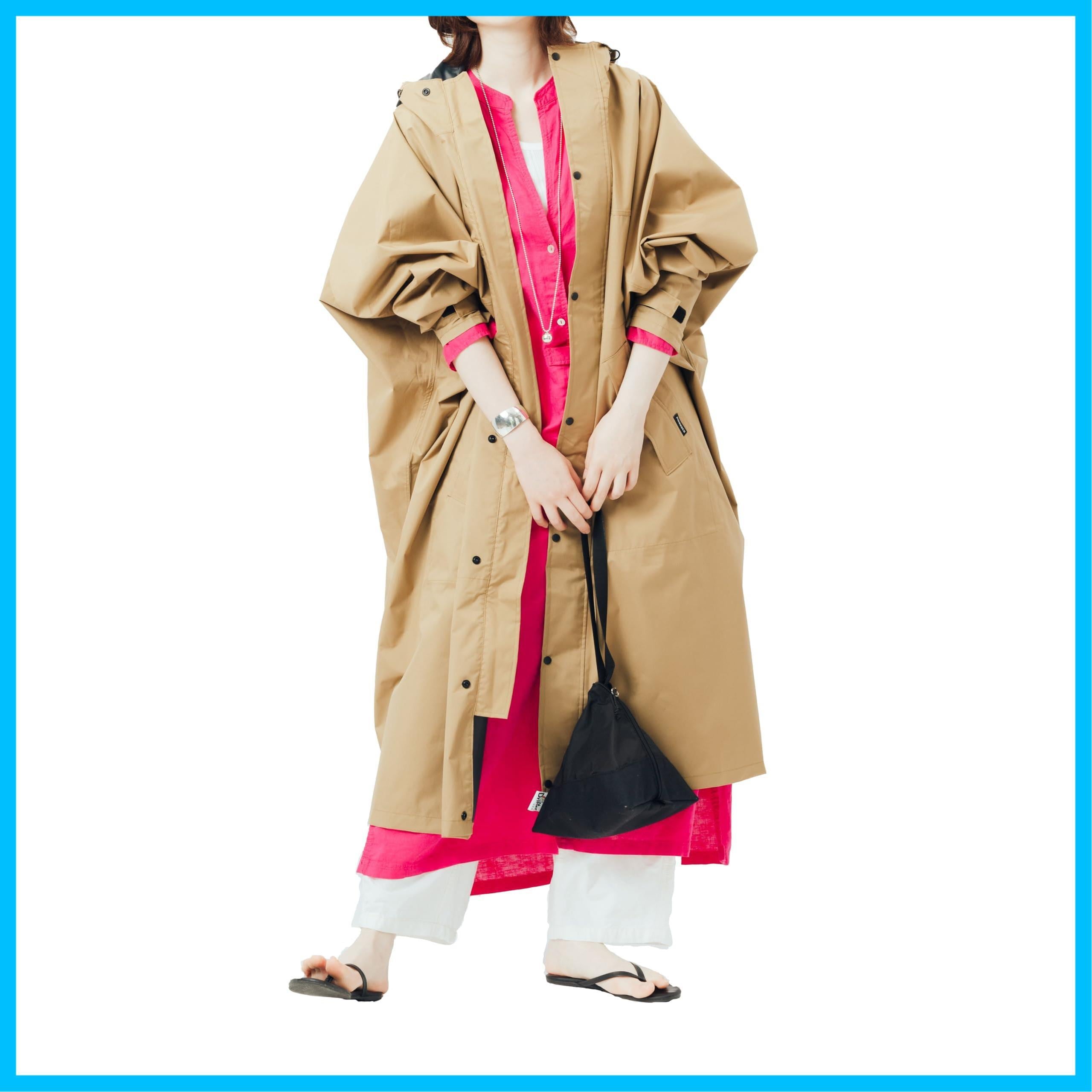 フルオープンできる前開きファスナーを設置し、脱ぎ着を楽にしました。ゆったりの身幅でリュックを中に背負うこともできるので、急な雨でもさっと着用が可能です(バッグの大きさによっては着用できない場合もございます)。持ち運びに便利な収納袋付きです。