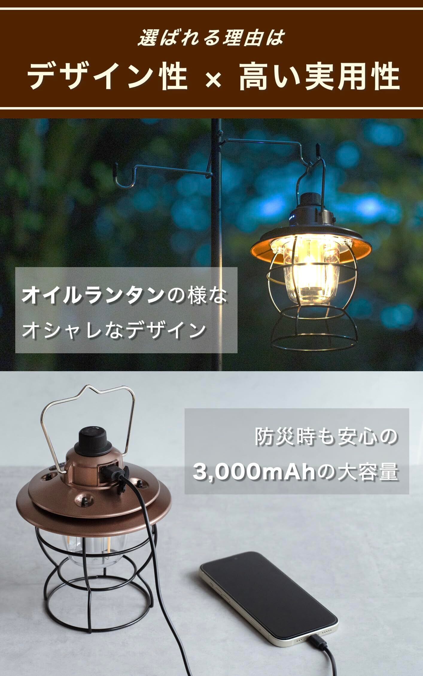 オシャレなLEDランタン:家の中でも使用できるオシャレなレトロ風のLEDランタンです。オシャレかつ実用性に優れたランタンで、アウトドアはもちろん、自宅でもインテリアとしても活用でき、さまざまなシーンで活躍します。