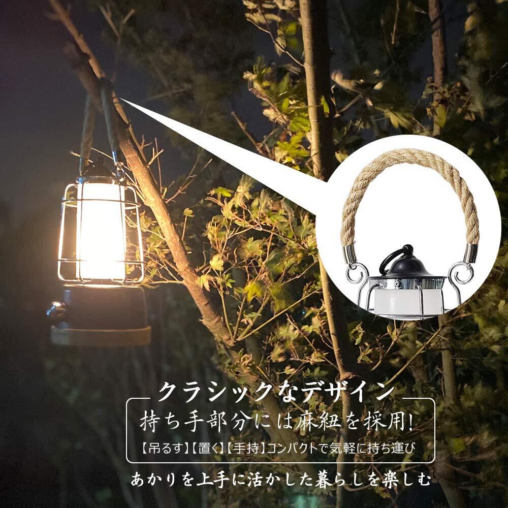 【おしゃれでレトロなLEDランタン】優しい暖色のLEDライトで、本体のダイヤルスイッチを押して点灯・消灯します無段階調光調色式で、本体のダイヤルを回してお好みの明るさになるまで調節、ダイヤルスイッチを押して調光調色切り替えができます。 ご利用シーンに合わせて使えます。照らしすぎず落ち着いた雰囲気に味わえ、どこか懐かしい気持ちにさせてくれるレトロ調のおしゃれなLEDランタンです。シンプルでクラシックなデザインは、洋風・和風の場所を問わず様々な雰囲気に溶け込みます。 キャンプライト、テーブルライトやナイトライトなどお好みに合わせて雰囲気作りの照明としても最適です。