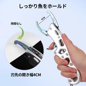 魚を掴みやすい:釣れた魚をしっかりと掴みながら保護することができる魚掴み フィッシュグリップです。鋭い歯やトゲを持つ魚や暴れる魚から手を守りながら、フックを外すのに役立ちます。さらに、魚に直接触れずにフックを外すことで、魚への負担を軽減できます