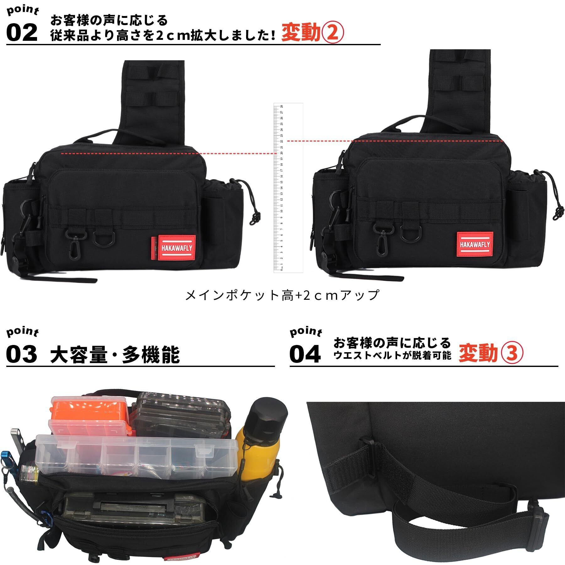 HAKAWAFLY フィッシングバッグ5WAY ロッドベルト2点とカラビナ5点付き 釣りバッグ 防水 タックルバッグ 多機能 大容量 ランガンバッグ (ブラック、カーキ迷彩、ネイビー迷彩) | Lulu