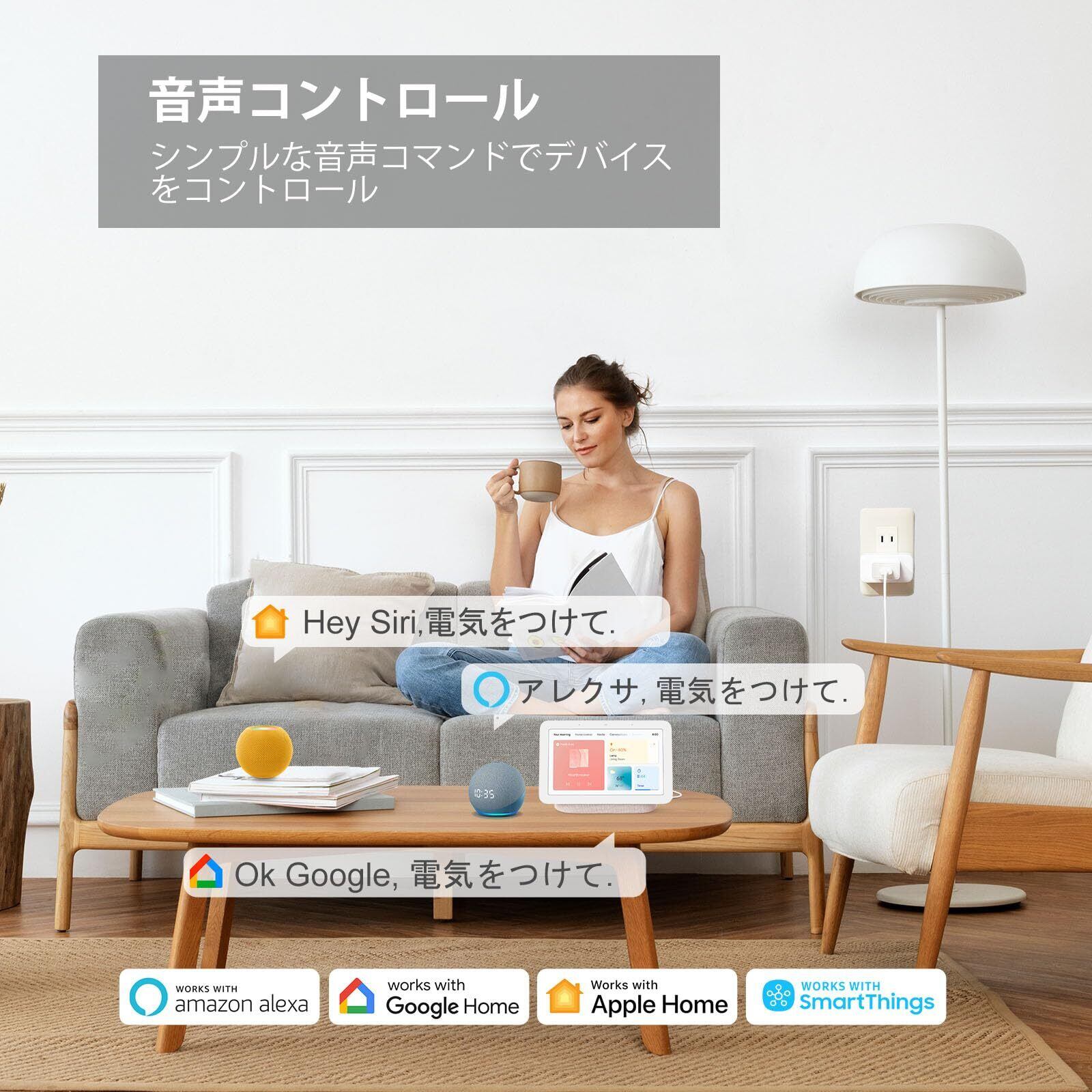 【アプリと音声コントロール】スマートプラグをいつでもどこでもアプリで制御したり、 Alexa、Googleアシスタント、Siriを使って簡単な音声コマンドを出すことができます。