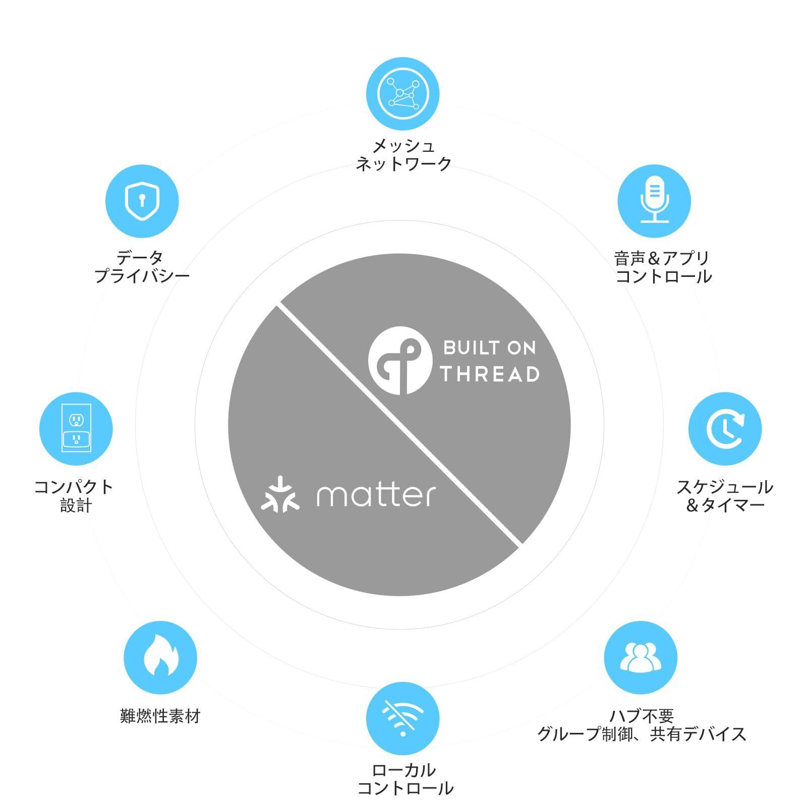 【Matterに完全対応】このスマートプラグはMatter認定済みで、Apple Home、 Alexa、Google Home、Samsung SmartThingsを含むすべての認定スマートホームプラットフォームで使用できます。ホームネットワークが切断されている場合でも、ローカルエリアネットワーク(LAN)上のすべてのMatter認定デバイスは問題なく動作します。