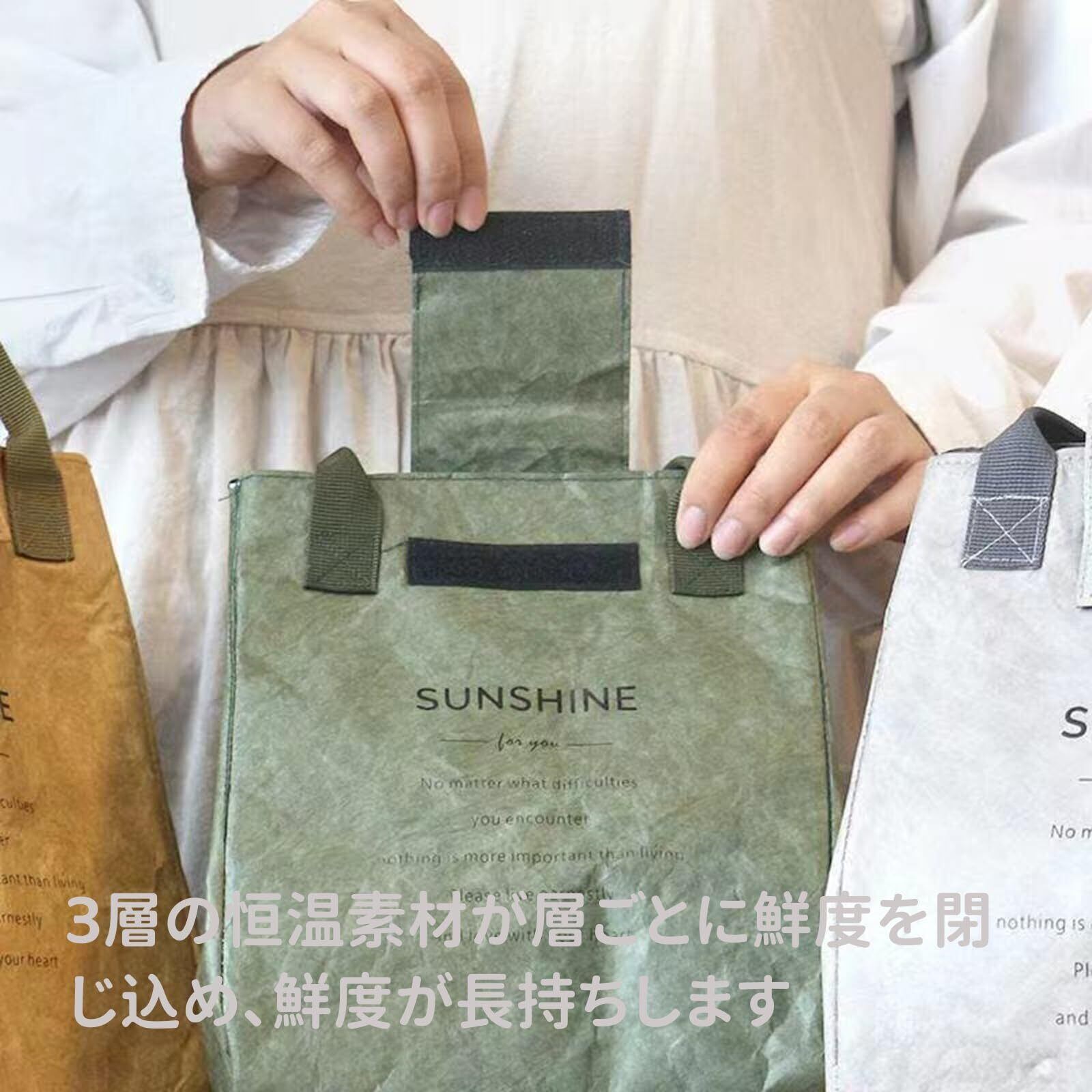 お弁当やランチボックスを持ち歩く際に、食品を新鮮で温かい状態で保つことができます。また、防水性があるため、バッグ内部の食品が水濡れする心配もありません。手提げタイプのデザインなので、持ち運びが簡単で便利です。