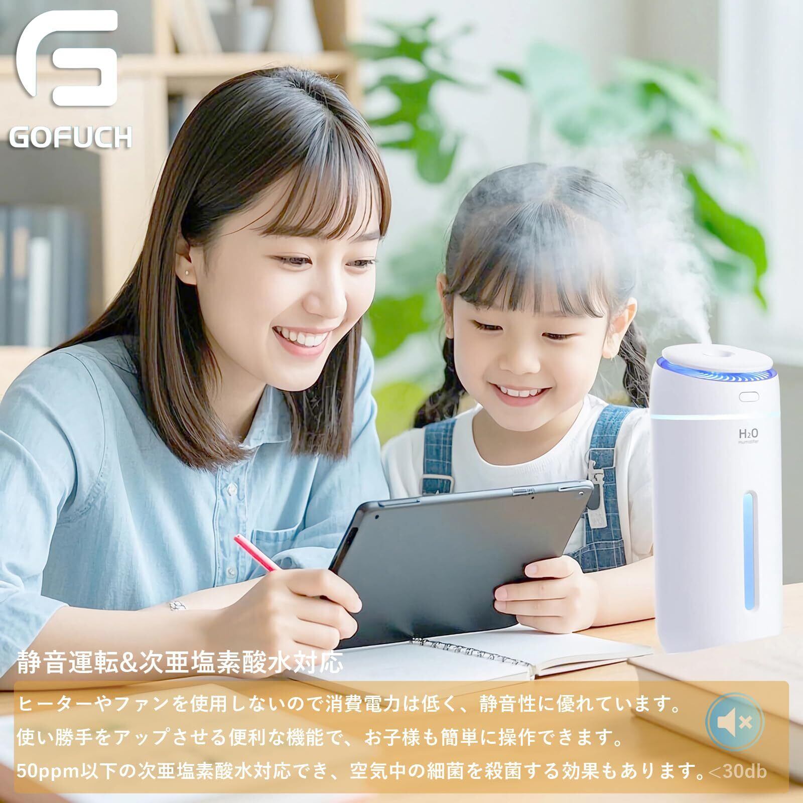 【アロマ対応&次亜塩素酸水対応】アロマディフューザーとしてご好きな水溶性ありのアロマオイルが使用可能です。湿度を上げた上で空間をリラックスできる香りで満たします。50ppm以下の次亜塩素酸水対応できの加湿器で 衛生的で、空気中の細菌を殺菌する効果もあります。