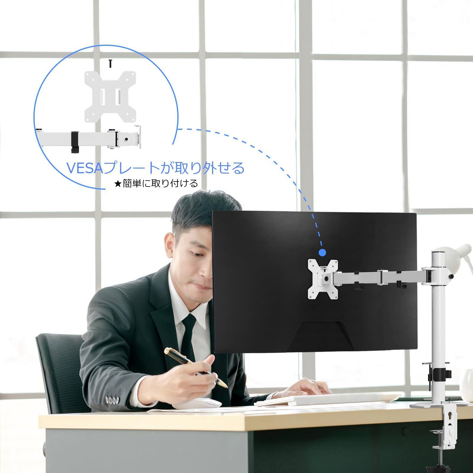PC モニターアーム ディスプレイアーム 13-32インチ対応 シングルモニターアーム グロメット&クランプ式 白 ホワイト 耐荷重10kg VESA規格75-100mm (MD9421W)